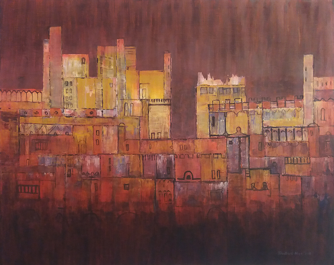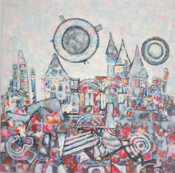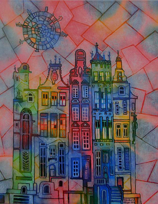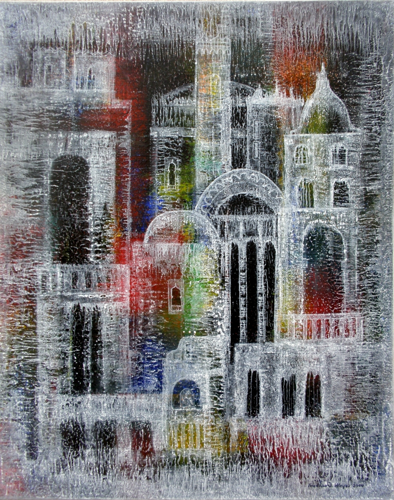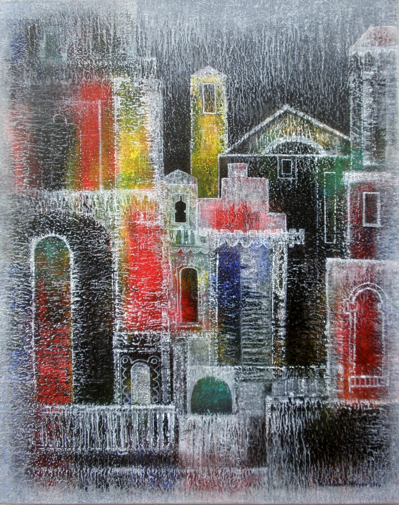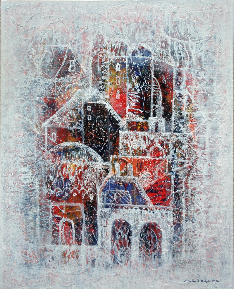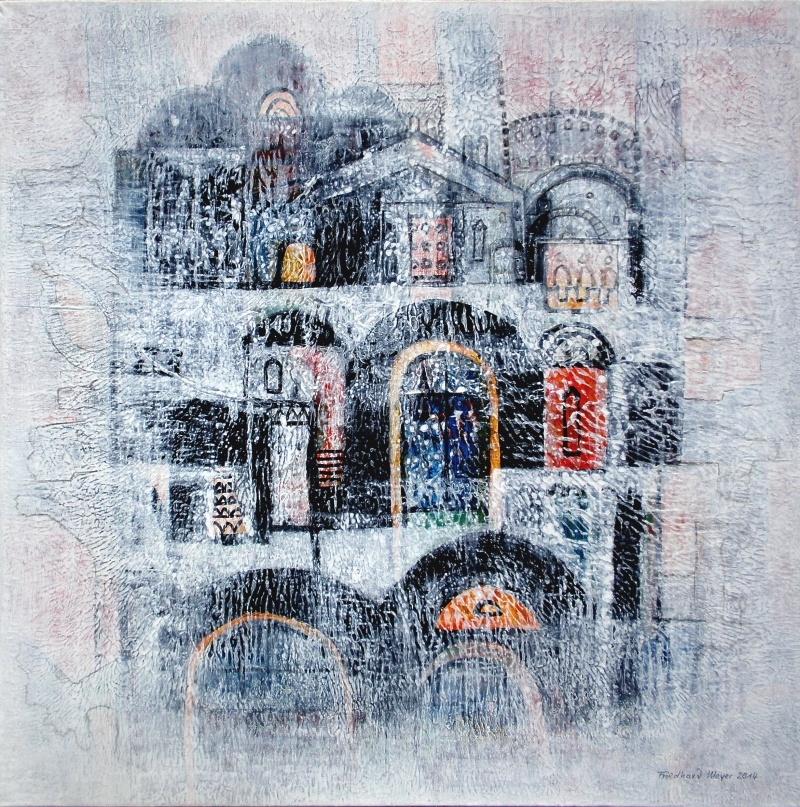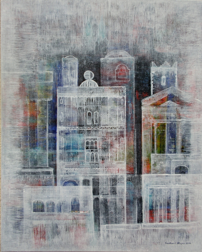 Die Bilder werden in Acryltechnik auf reliefartig vorstrukturierter Leinwand gemalt, wobei der Weg von starker, bunter Vormalung zu reduzierter Farbgebung führt, oft über den Einsatz der Farbe „Weiß“. Die gezielte, dosierte Anwendung von „Weiß“ verleiht den Bildern eine gewisse Art von Noblesse .