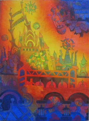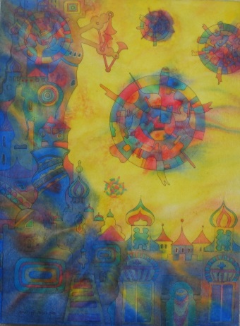 So habe auch ich mich dieses Themas angenommen und im Laufe des Jahres 2003 die Serie “Die Bibel” (20 Bilder) gemalt. Es sind großformatige, figürliche Darstellungen, die in erster Linie das Alte Testament zum Thema haben. Die Bilder wurden zunächst mit “trockenen” Acrylfarben und feinem Pinsel graphisch im Detail angelegt und anschließend großflächig, atmosphärisch mit breitem Pinsel und dünner Acrylfarbe überarbeitet.