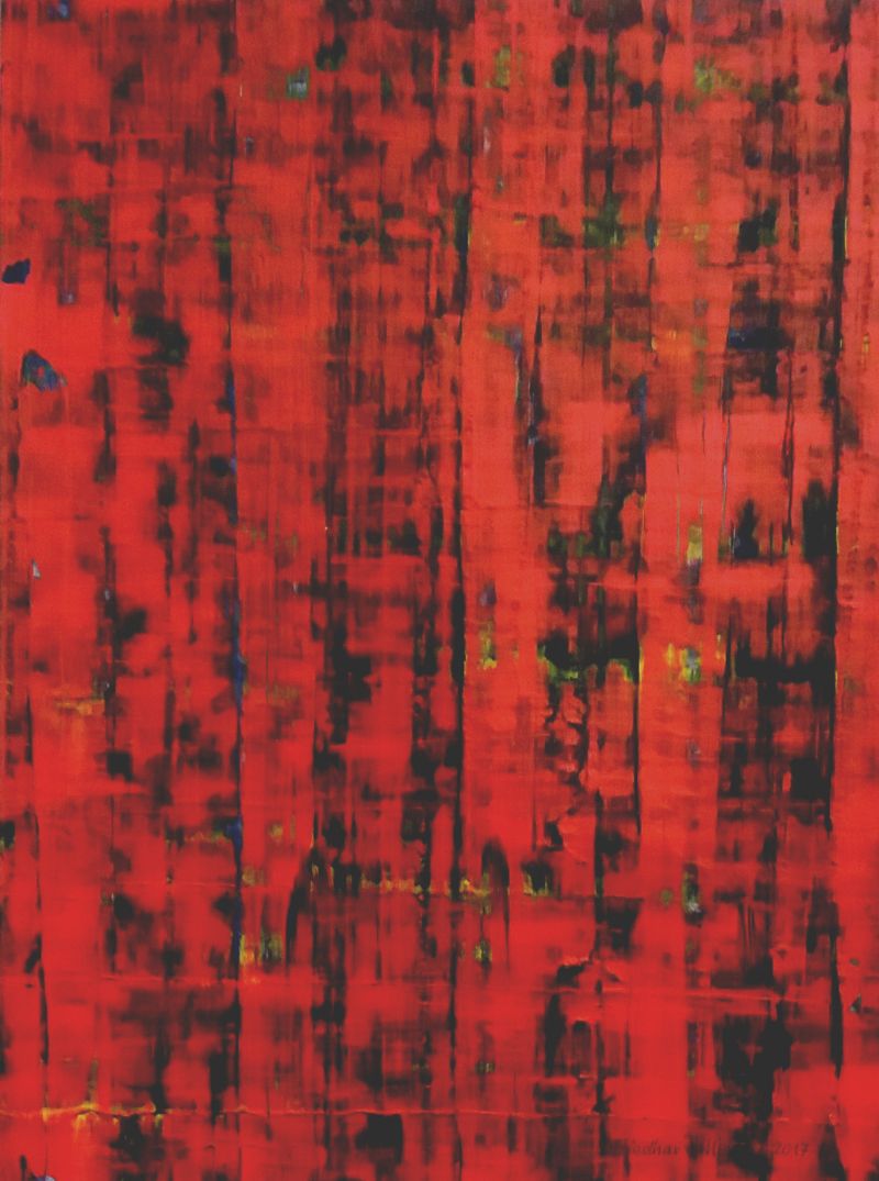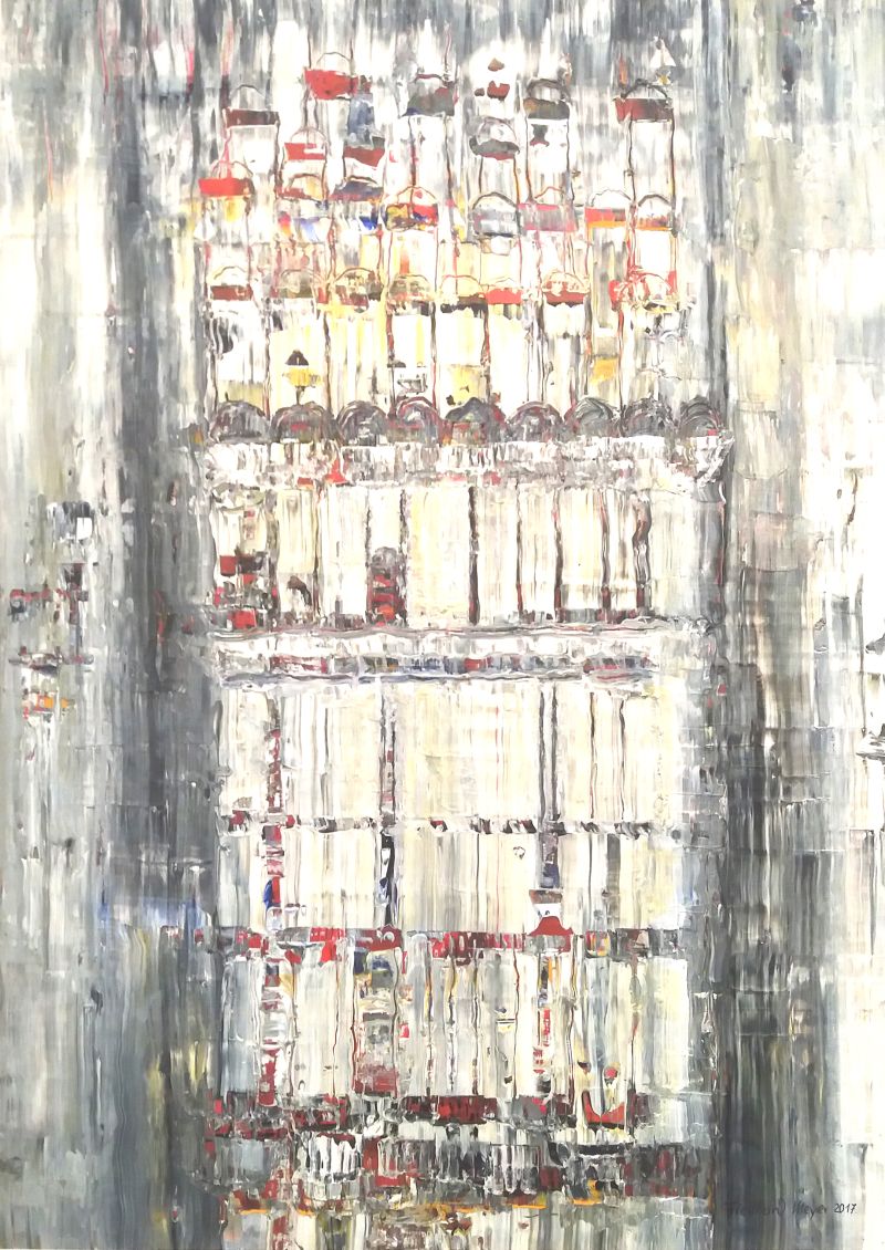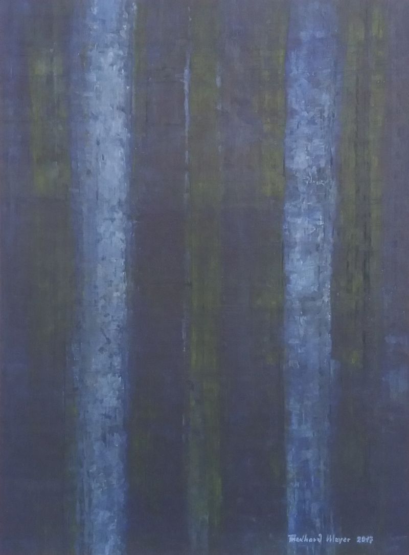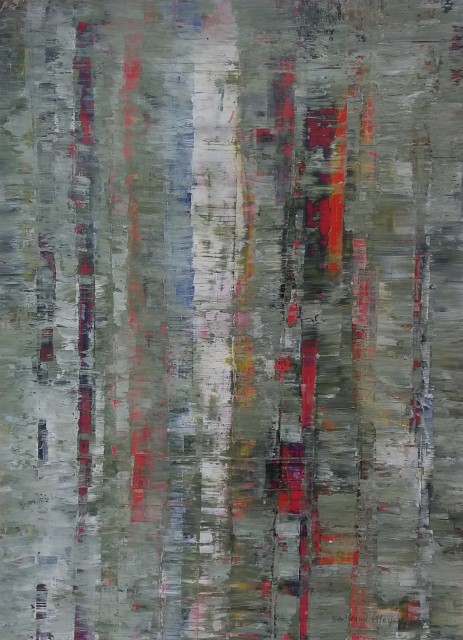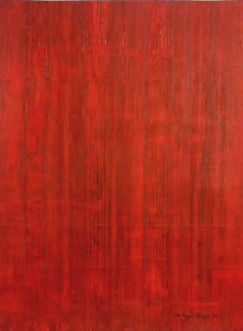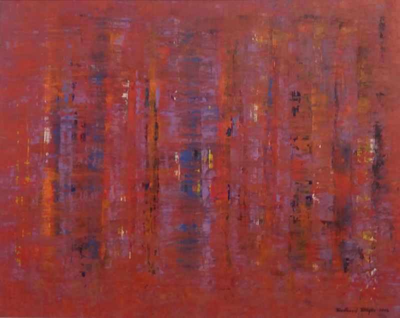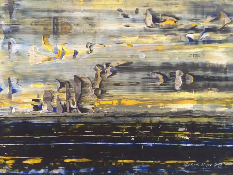Seit 1993 beschäftige ich mich mit großformatigen Abstraktionen. Dabei werden dünnflüssige Acrylfarben durch Träufeln, Gießen oder Schütten auf den Bildträger aufgebracht. Die Bildgestaltung wird bei diesen Bildern nicht einseitig von der vorgegebenen und unverrückbaren Bildidee erzwungen. Vielmehr stehen Bildidee und Bildgestaltung in gegenseitiger Abhängigkeit. Während des Arbeitsprozesses entstehen z.B. neue Bildideen, die dann durch geeignete Farb- und Formwahl im weiteren Arbeitsverlauf realisiert werden. Die Entstehung des Bildes vollzieht sich sozusagen in einer stufenweise fortschreitenden Wechselwirkung zwischen Bildgestaltung und Bildidee. In jüngerer Zeit entstehen diese Bilder in der Technik „Die Farbe Weiß", ab 2013 vornehmlich in Acryl-Rakeltechnik.
