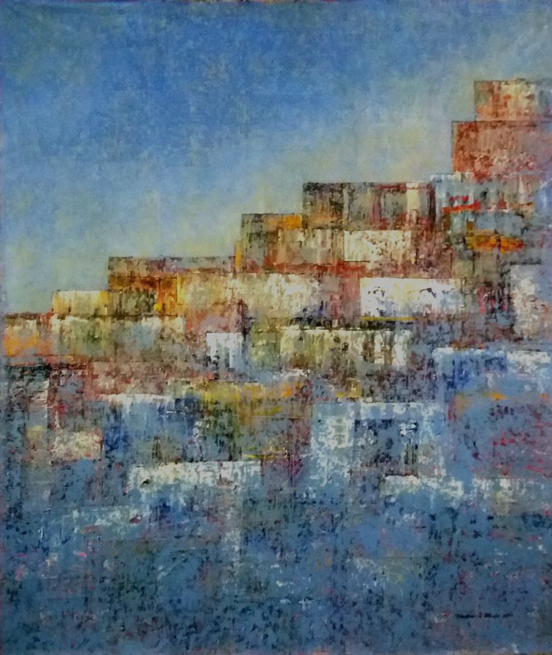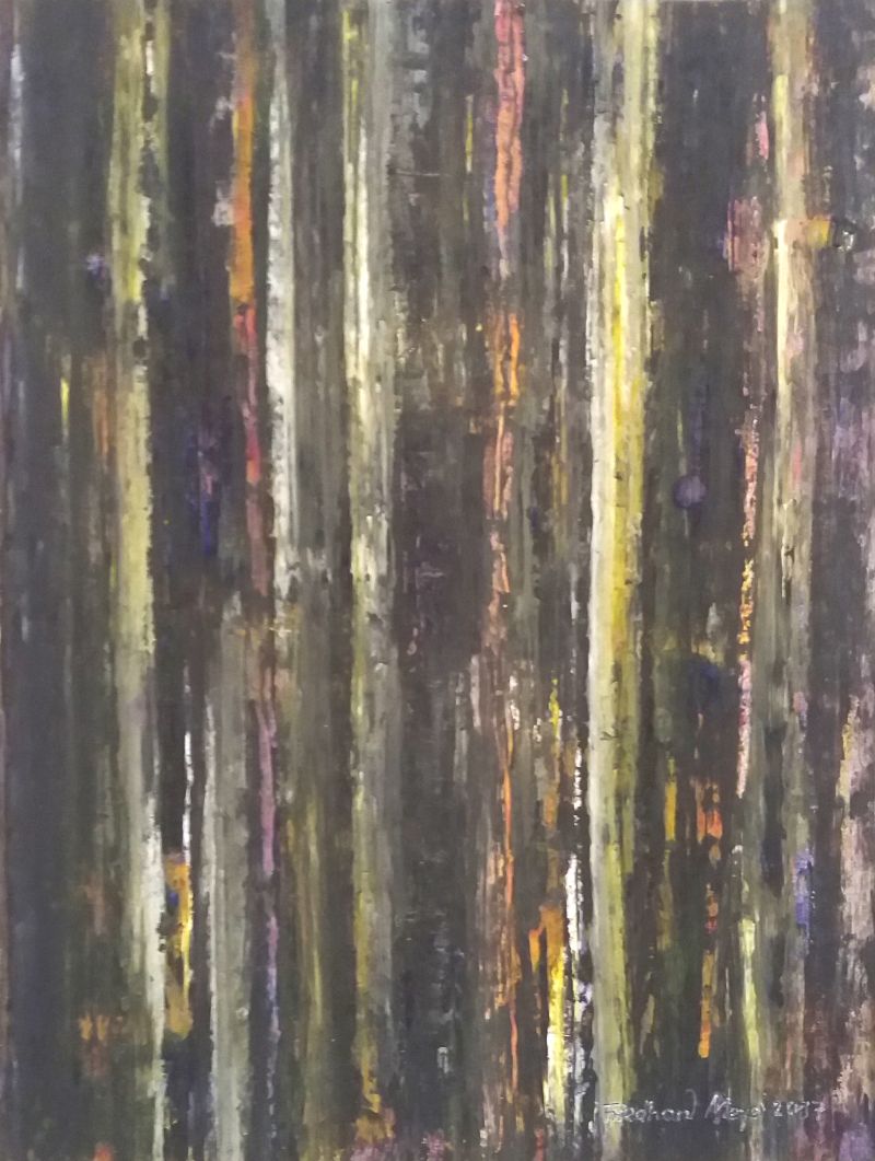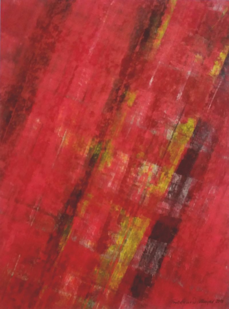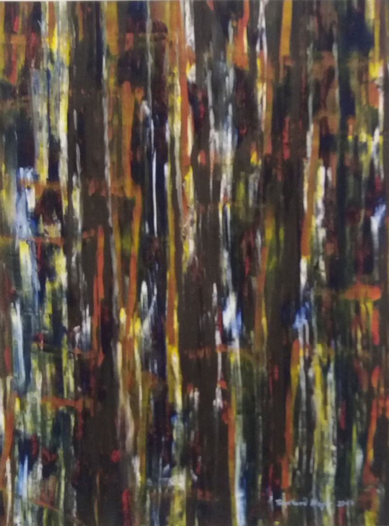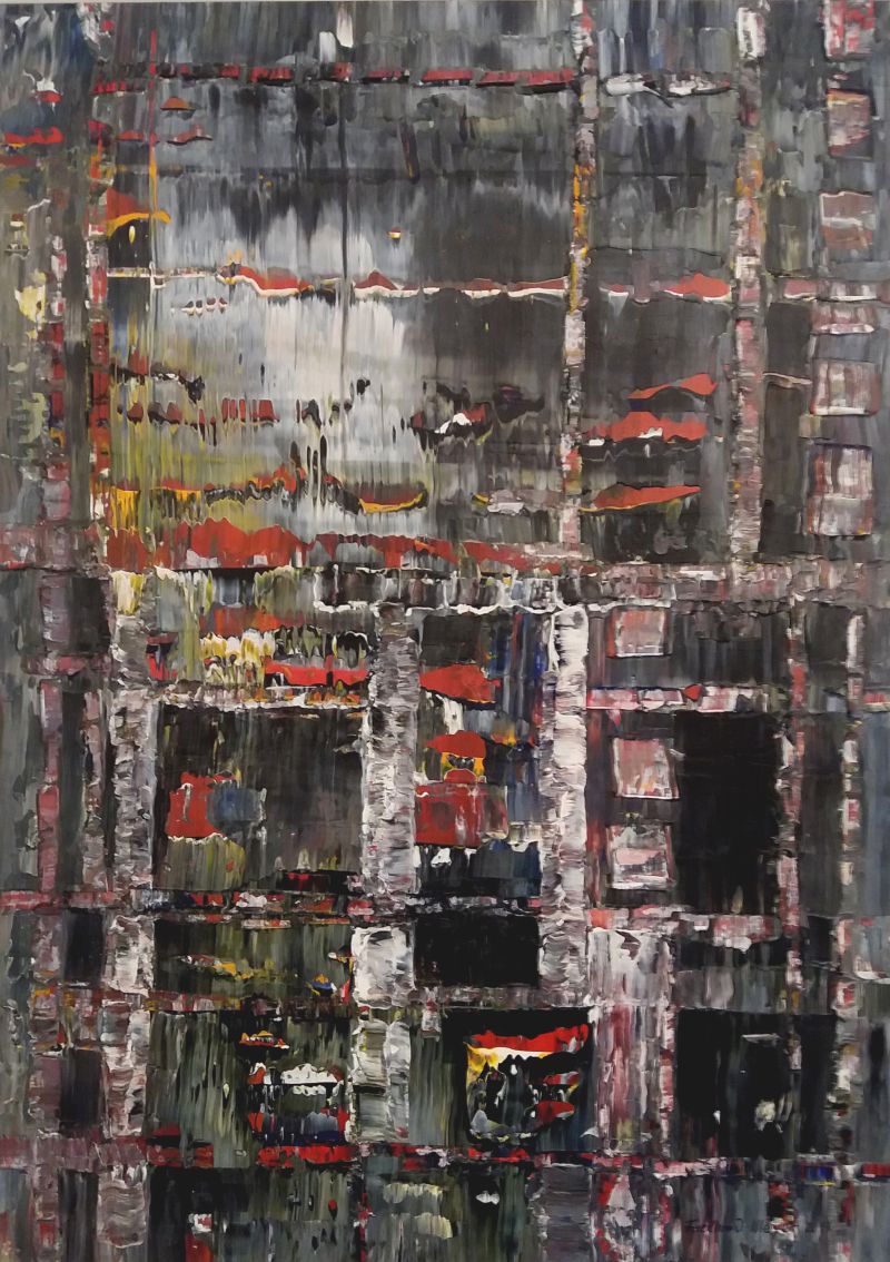 Seit 1993 beschäftige ich mich mit großformatigen Abstraktionen. Dabei werden dünnflüssige Acrylfarben durch Träufeln, Gießen oder Schütten auf den Bildträger aufgebracht. Die Bildgestaltung wird bei diesen Bildern nicht einseitig von der vorgegebenen und unverrückbaren Bildidee erzwungen. Vielmehr stehen Bildidee und Bildgestaltung in gegenseitiger Abhängigkeit. Während des Arbeitsprozesses entstehen z.B. neue Bildideen, die dann durch geeignete Farb- und Formwahl im weiteren Arbeitsverlauf realisiert werden. Die Entstehung des Bildes vollzieht sich sozusagen in einer stufenweise fortschreitenden Wechselwirkung zwischen Bildgestaltung und Bildidee. In jüngerer Zeit entstehen diese Bilder in der Technik „Die Farbe Weiß", ab 2013 vornehmlich in Acryl-Rakeltechnik.