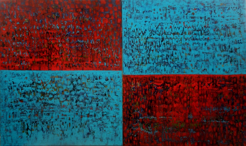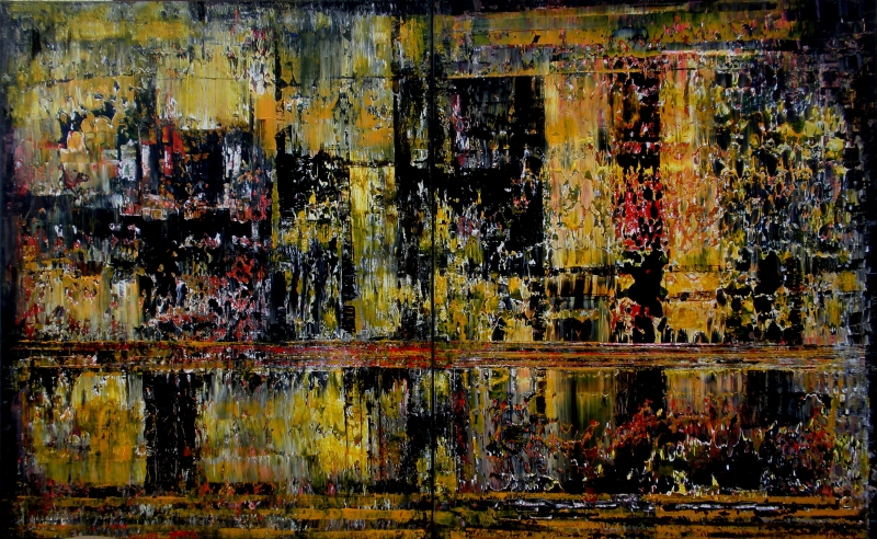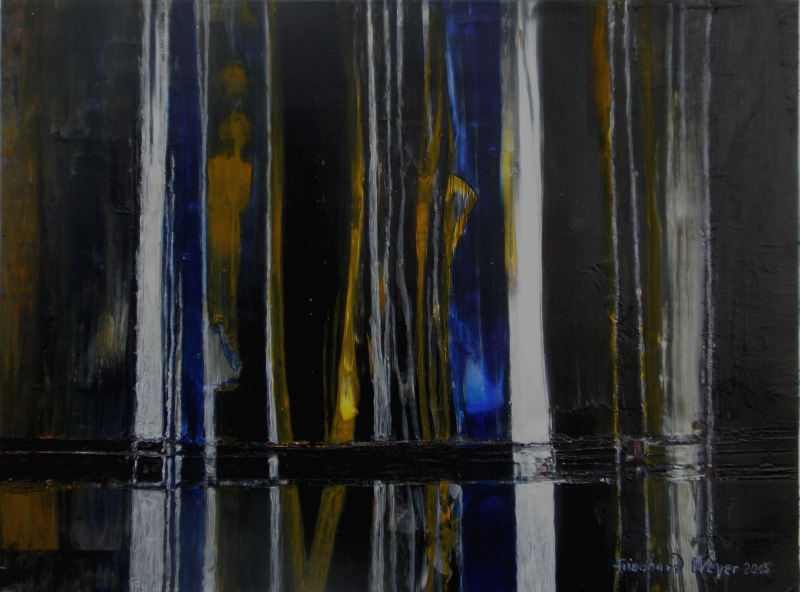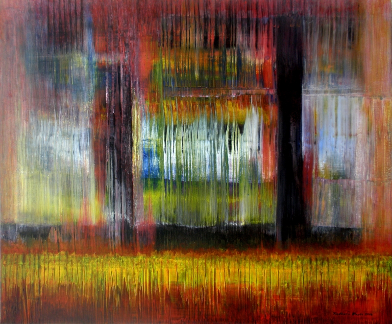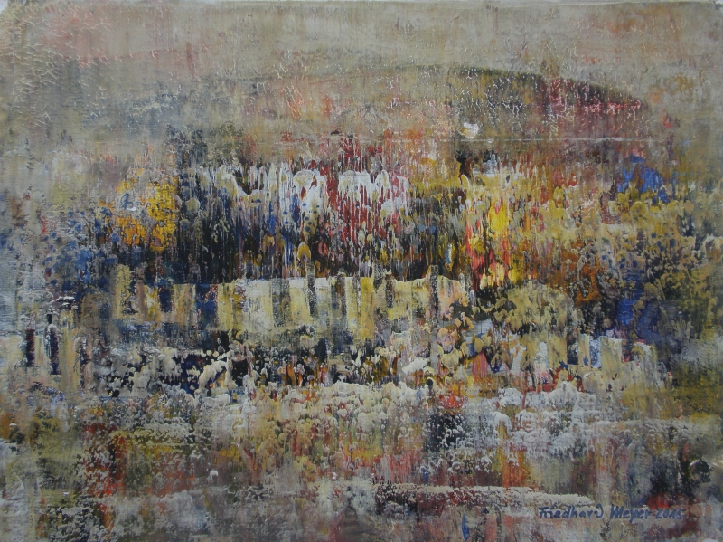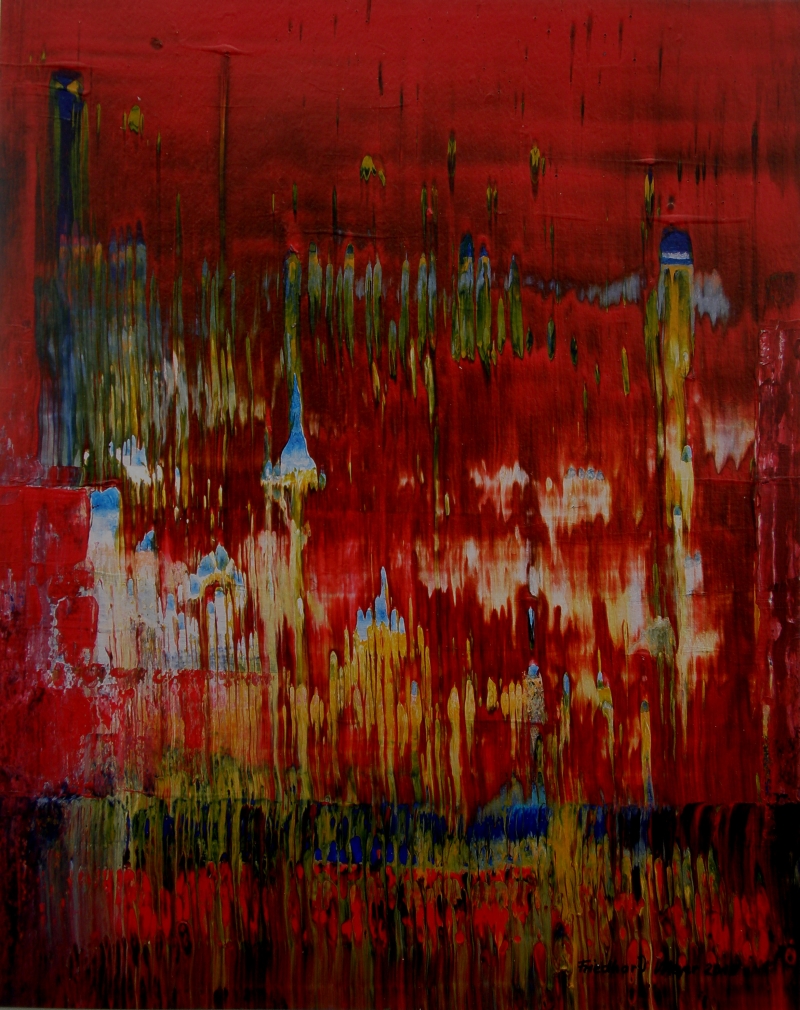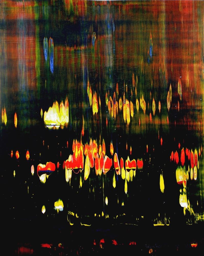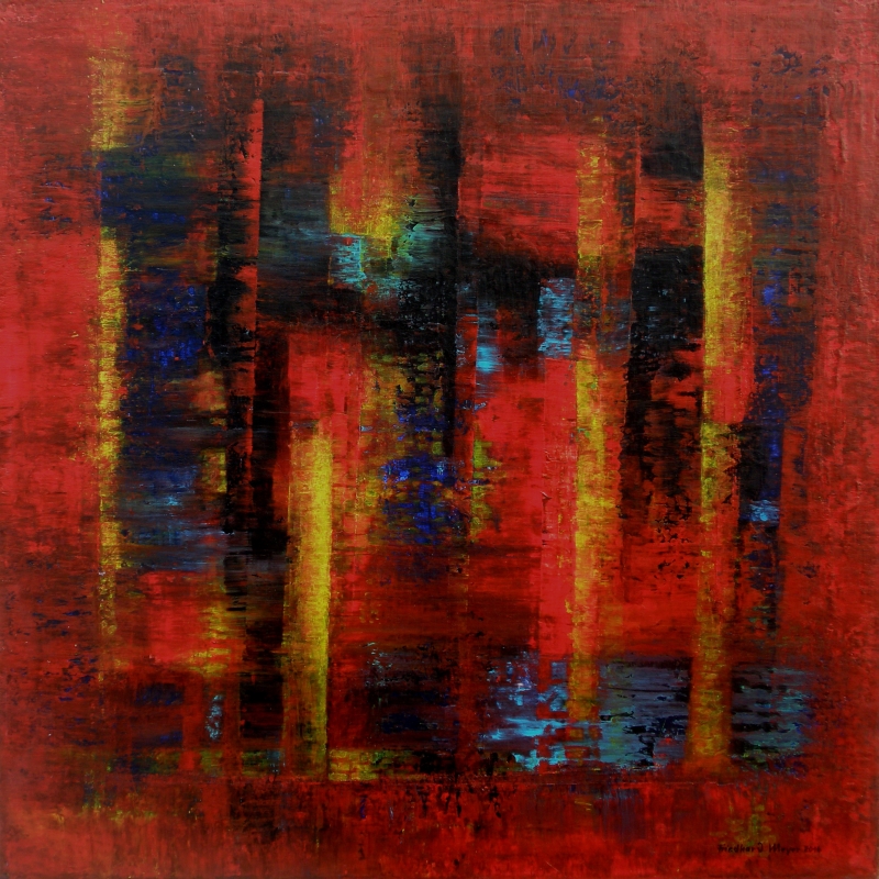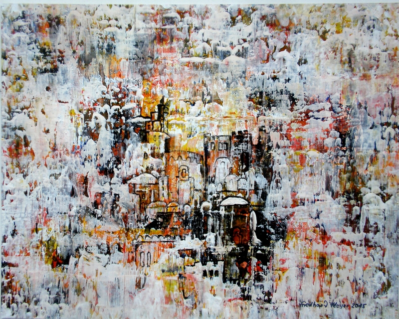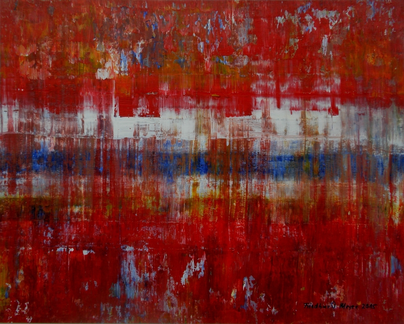 Seit 1993 beschäftige ich mich mit großformatigen Abstraktionen. Dabei werden dünnflüssige Acrylfarben durch Träufeln, Gießen oder Schütten auf den Bildträger aufgebracht. Die Bildgestaltung wird bei diesen Bildern nicht einseitig von der vorgegebenen und unverrückbaren Bildidee erzwungen. Vielmehr stehen Bildidee und Bildgestaltung in gegenseitiger Abhängigkeit. Während des Arbeitsprozesses entstehen z.B. neue Bildideen, die dann durch geeignete Farb- und Formwahl im weiteren Arbeitsverlauf realisiert werden. Die Entstehung des Bildes vollzieht sich sozusagen in einer stufenweise fortschreitenden Wechselwirkung zwischen Bildgestaltung und Bildidee. In jüngerer Zeit entstehen diese Bilder in der Technik „Die Farbe Weiß", ab 2013 vornehmlich in Acryl-Rakeltechnik.