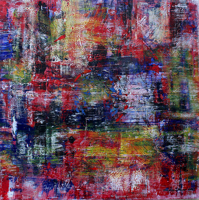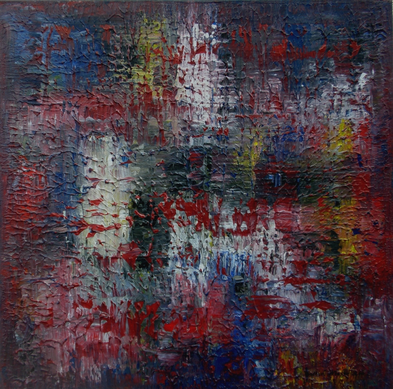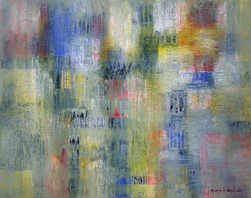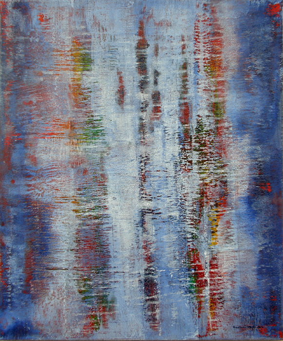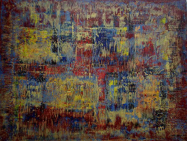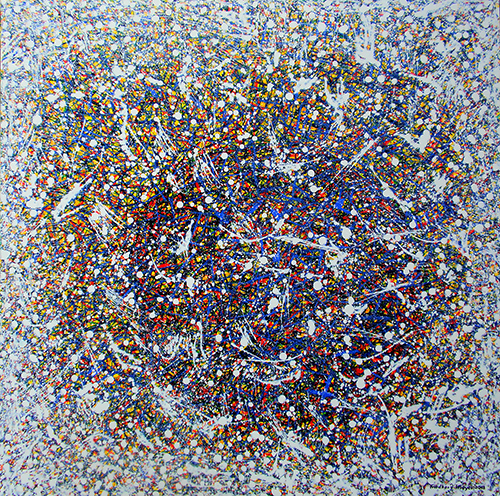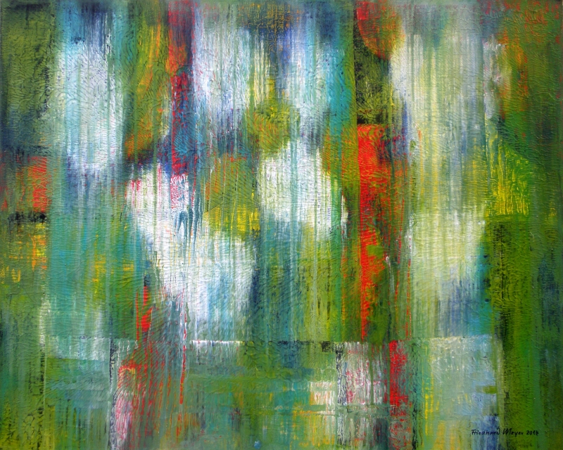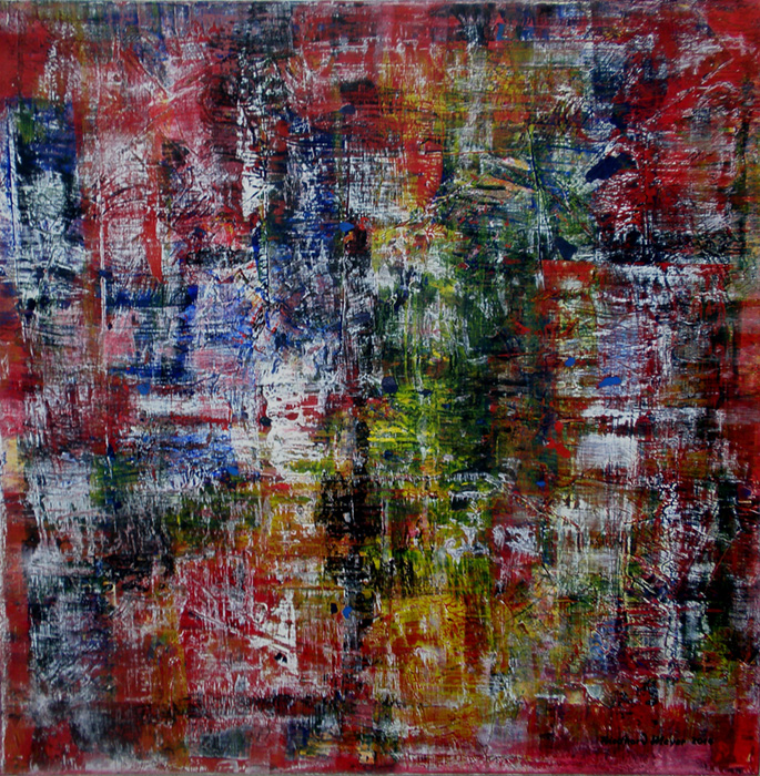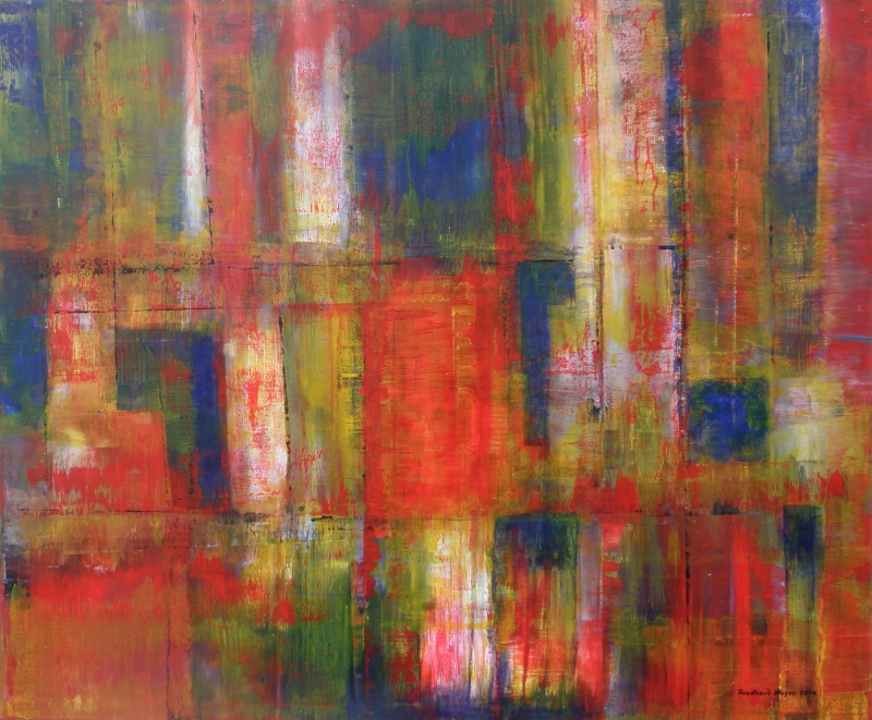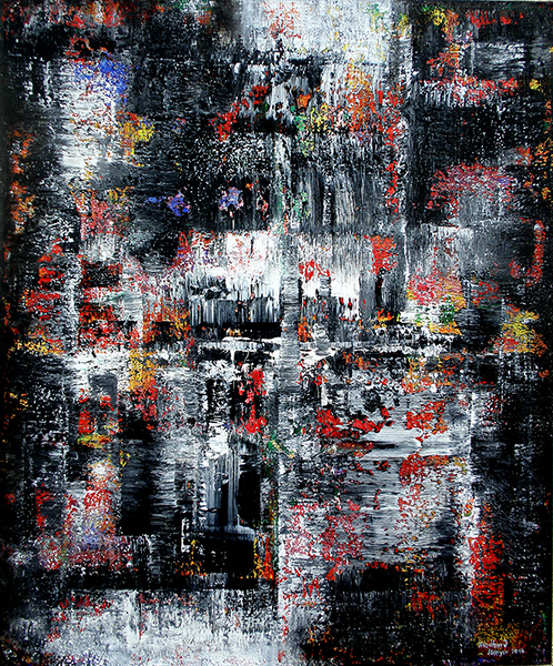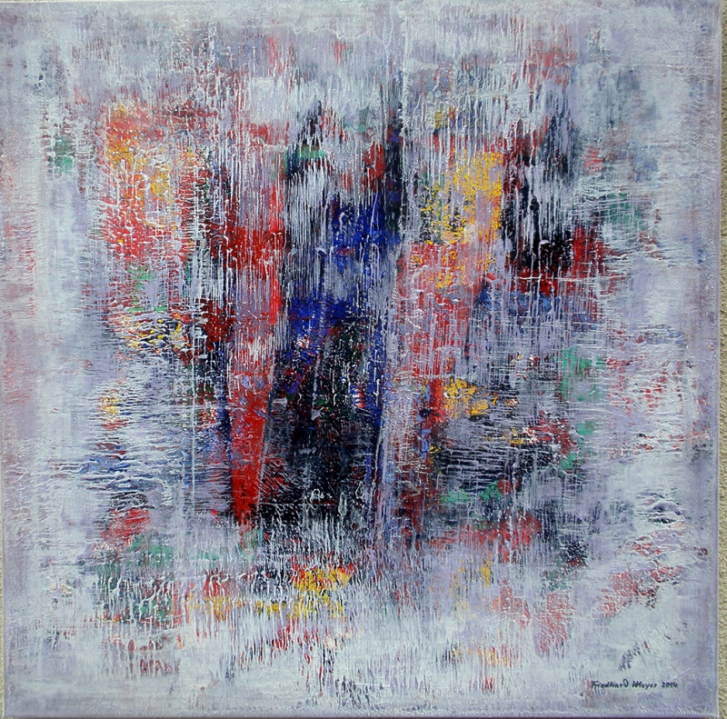 Seit 1993 beschäftige ich mich mit großformatigen Abstraktionen. Dabei werden dünnflüssige Acrylfarben durch Träufeln, Gießen oder Schütten auf den Bildträger aufgebracht. Die Bildgestaltung wird bei diesen Bildern nicht einseitig von der vorgegebenen und unverrückbaren Bildidee erzwungen. Vielmehr stehen Bildidee und Bildgestaltung in gegenseitiger Abhängigkeit. Während des Arbeitsprozesses entstehen z.B. neue Bildideen, die dann durch geeignete Farb- und Formwahl im weiteren Arbeitsverlauf realisiert werden. Die Entstehung des Bildes vollzieht sich sozusagen in einer stufenweise fortschreitenden Wechselwirkung zwischen Bildgestaltung und Bildidee. In jüngerer Zeit entstehen diese Bilder in der Technik „Die Farbe Weiß", ab 2013 vornehmlich in Acryl-Rakeltechnik.