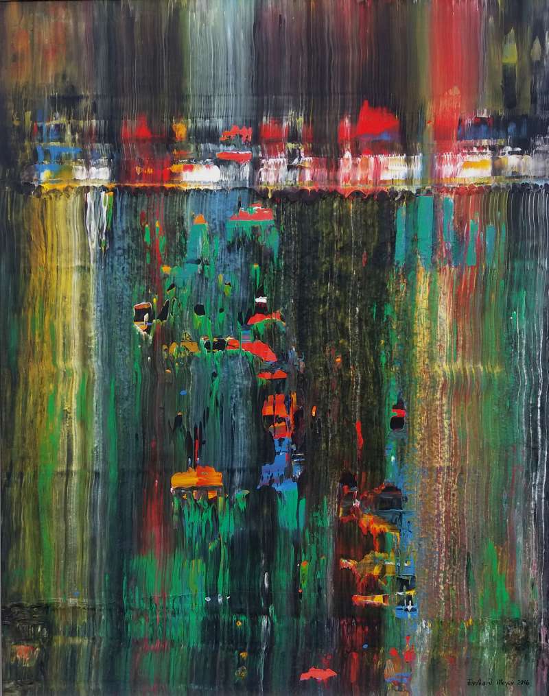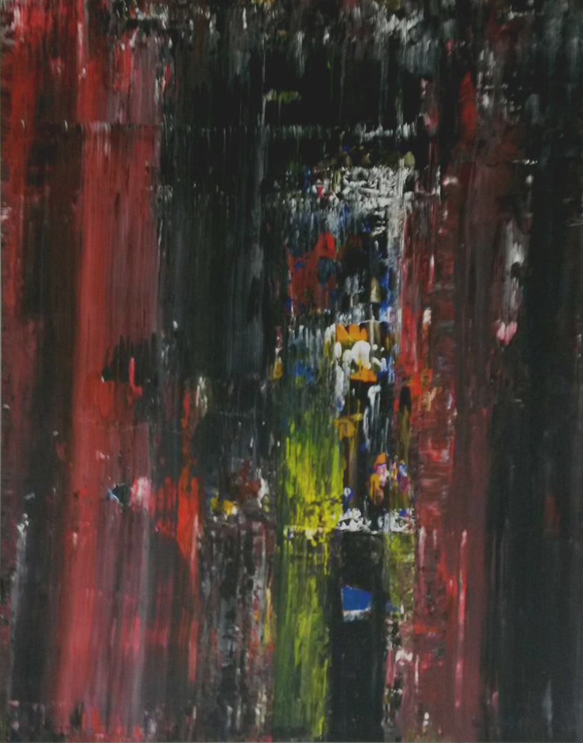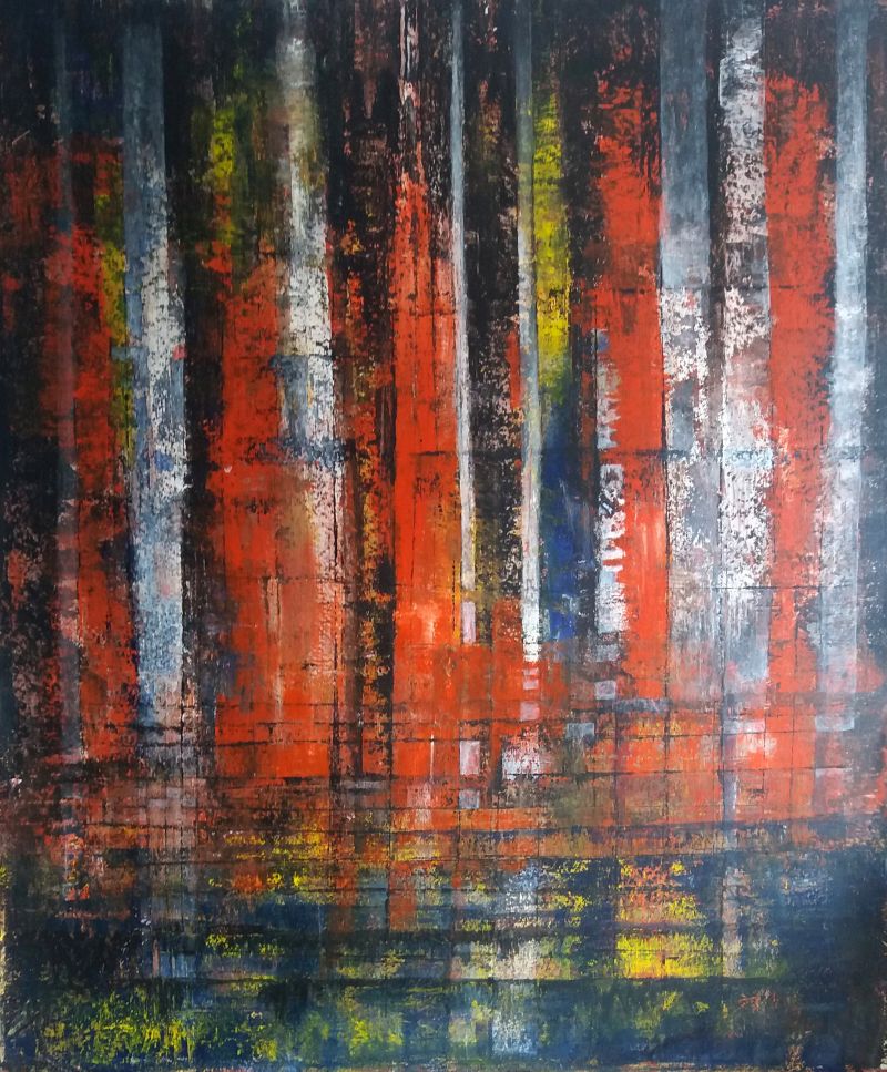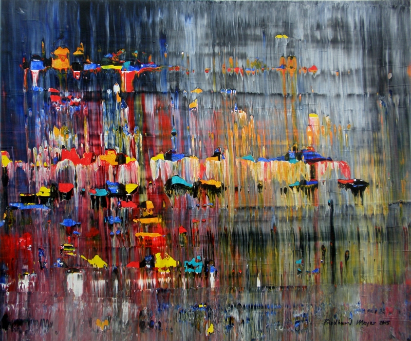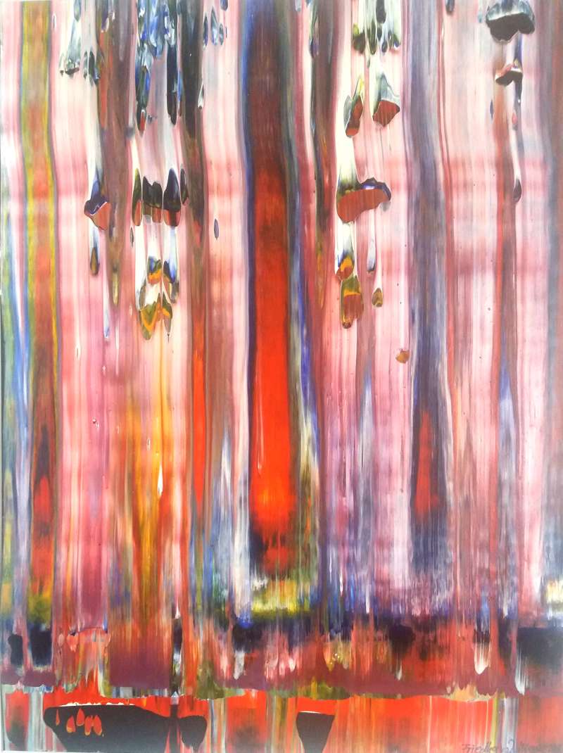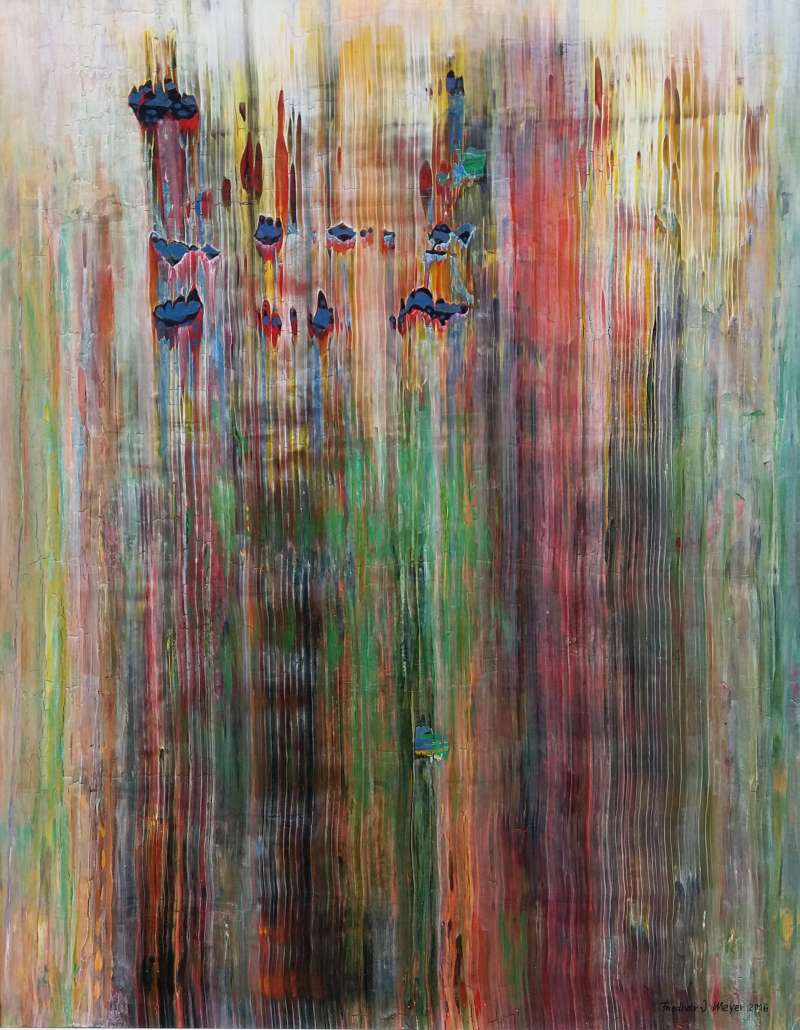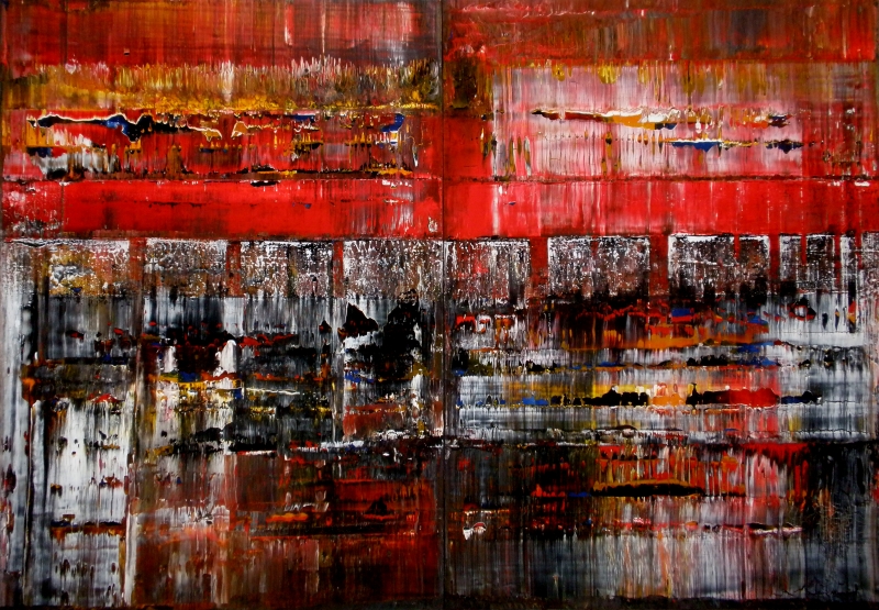 Seit 1993 beschäftige ich mich mit großformatigen Abstraktionen. Dabei werden dünnflüssige Acrylfarben durch Träufeln, Gießen oder Schütten auf den Bildträger aufgebracht. Die Bildgestaltung wird bei diesen Bildern nicht einseitig von der vorgegebenen und unverrückbaren Bildidee erzwungen. Vielmehr stehen Bildidee und Bildgestaltung in gegenseitiger Abhängigkeit. Während des Arbeitsprozesses entstehen z.B. neue Bildideen, die dann durch geeignete Farb- und Formwahl im weiteren Arbeitsverlauf realisiert werden. Die Entstehung des Bildes vollzieht sich sozusagen in einer stufenweise fortschreitenden Wechselwirkung zwischen Bildgestaltung und Bildidee. In jüngerer Zeit entstehen diese Bilder in der Technik „Die Farbe Weiß", ab 2013 vornehmlich in Acryl-Rakeltechnik.