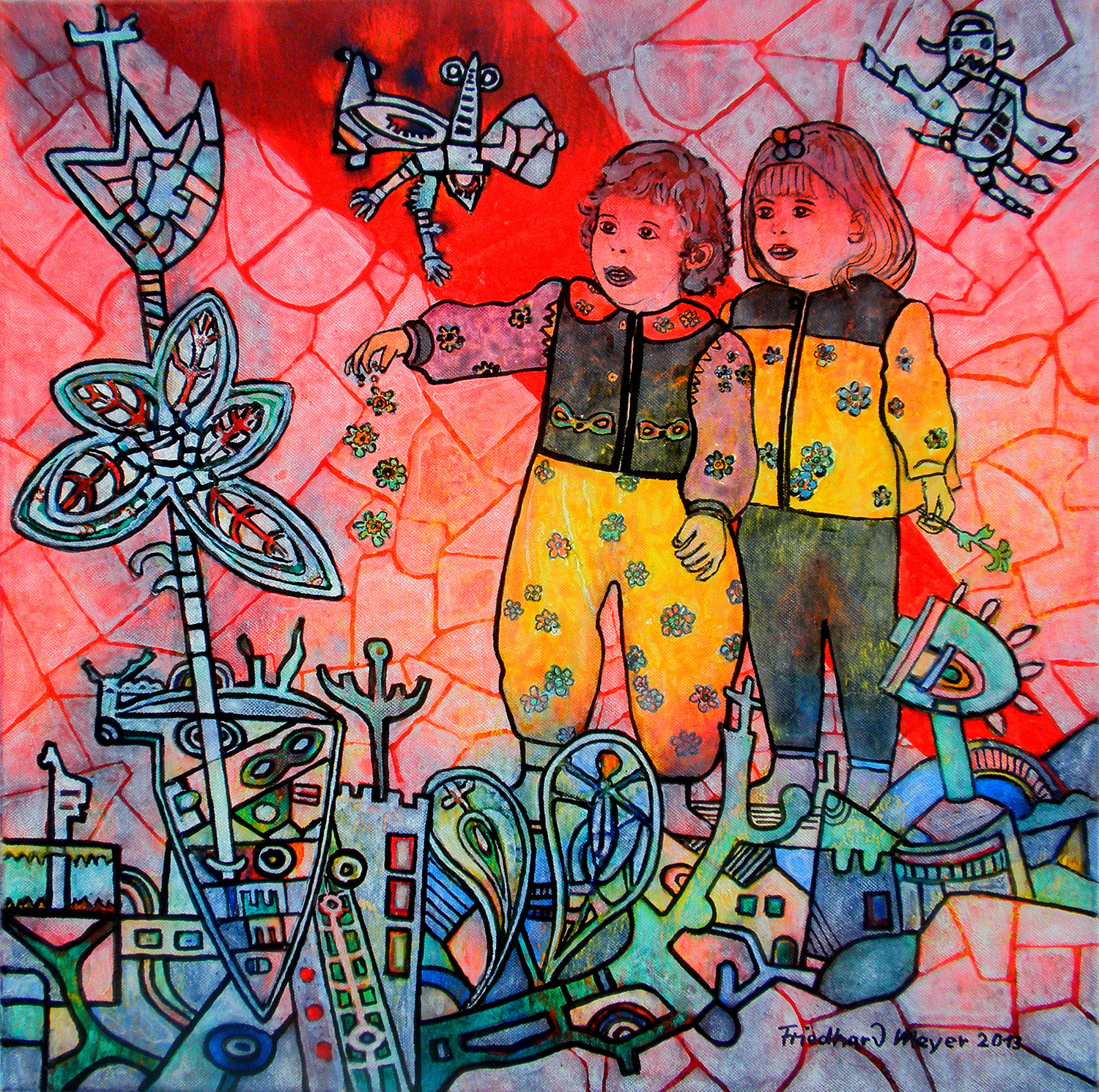 Die Bilder zeigen anrührende Kinderdarstellungen in märchenhafter, exotischer Umgebung, ausgeführt in der geheimnisvoll leuchtenden Facettentechnik.