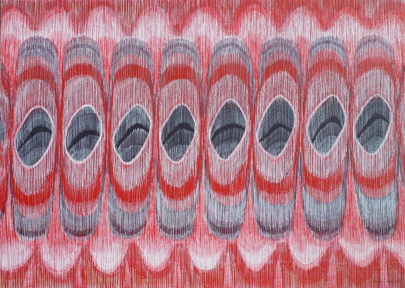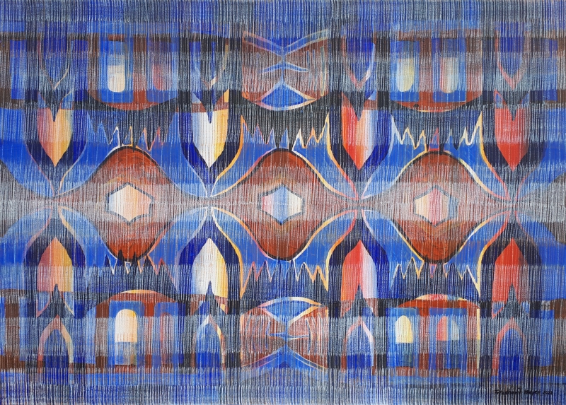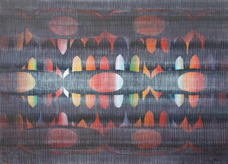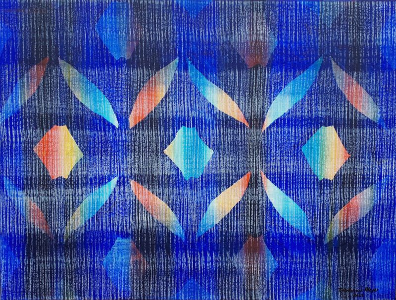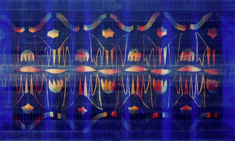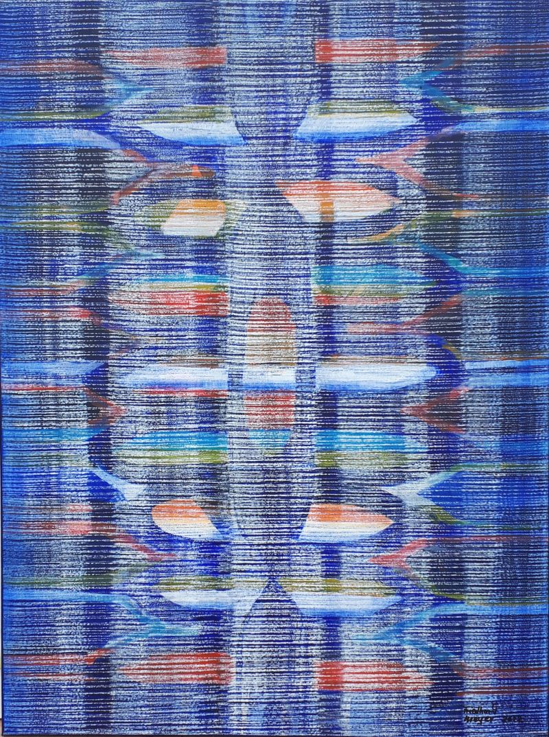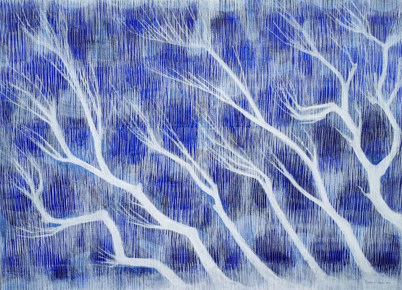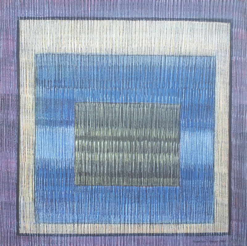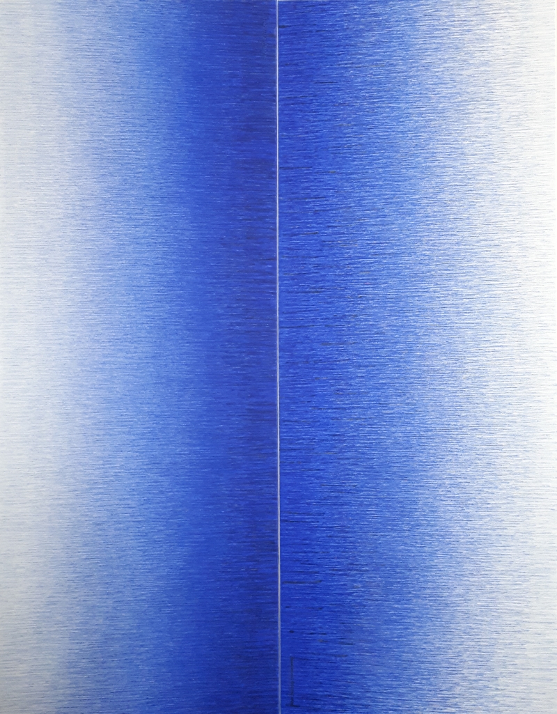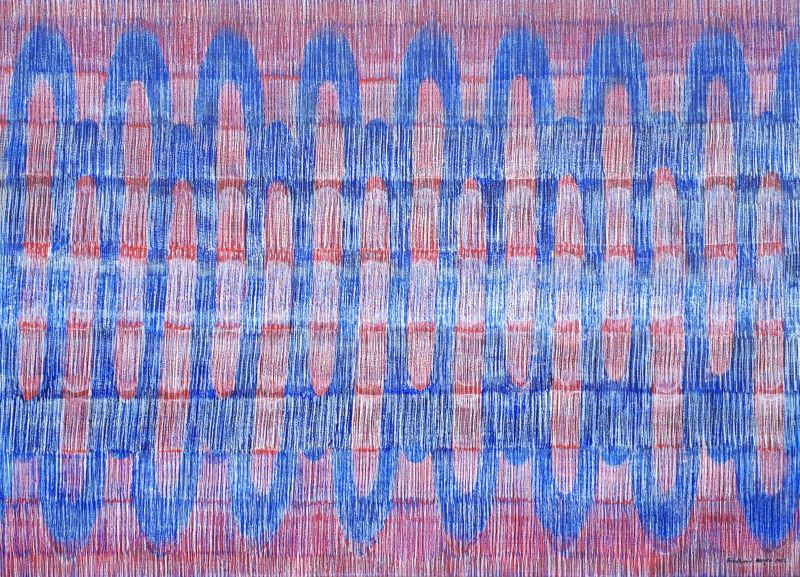 Ich arbeite bei diesen Bildern in meiner selbstentwickelten Acryl-Nadeltechnik, wobei meine Bildflächen einzig durch vertikales Aufsetzen eines 8 cm breiten Flachpinsels erzeugt werden. Das Aufbringen dieser „Nadeln“ erfordert äußerste Konzentration und Präzision.