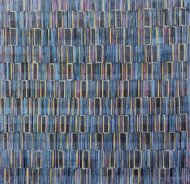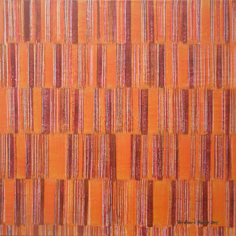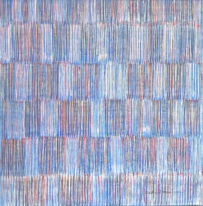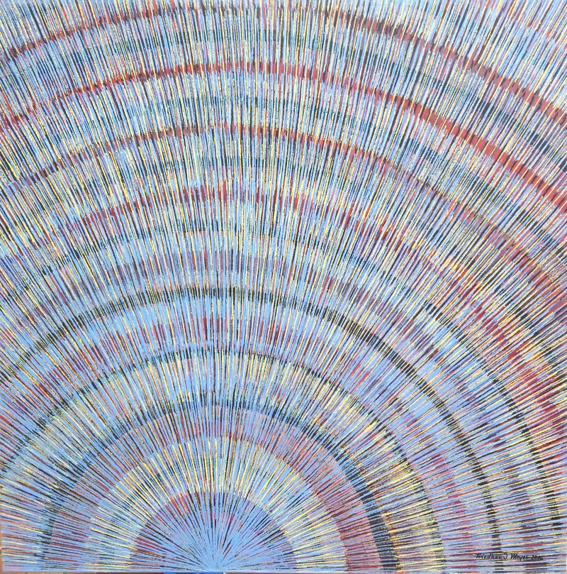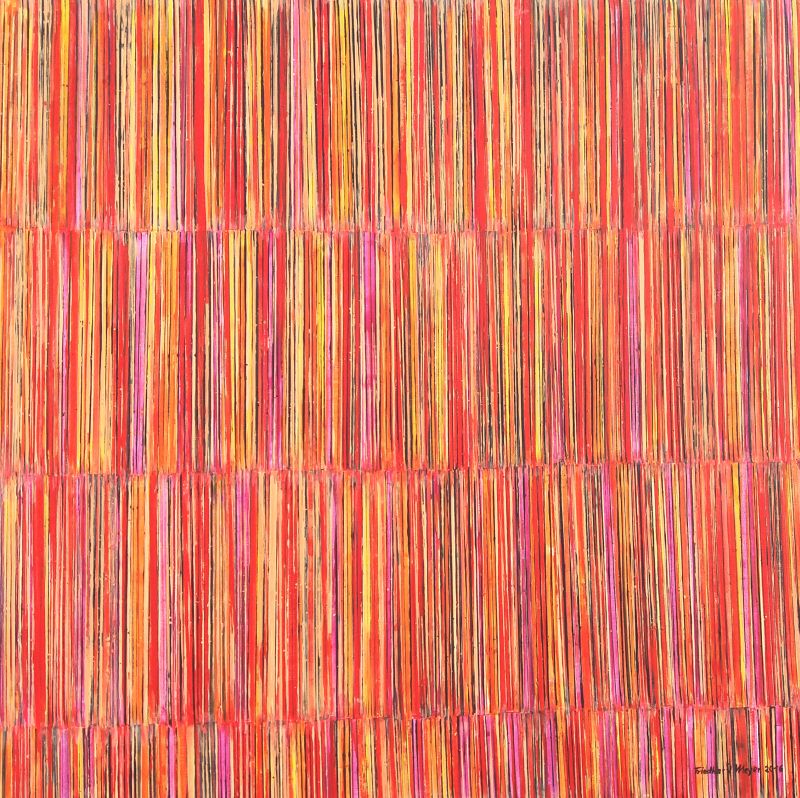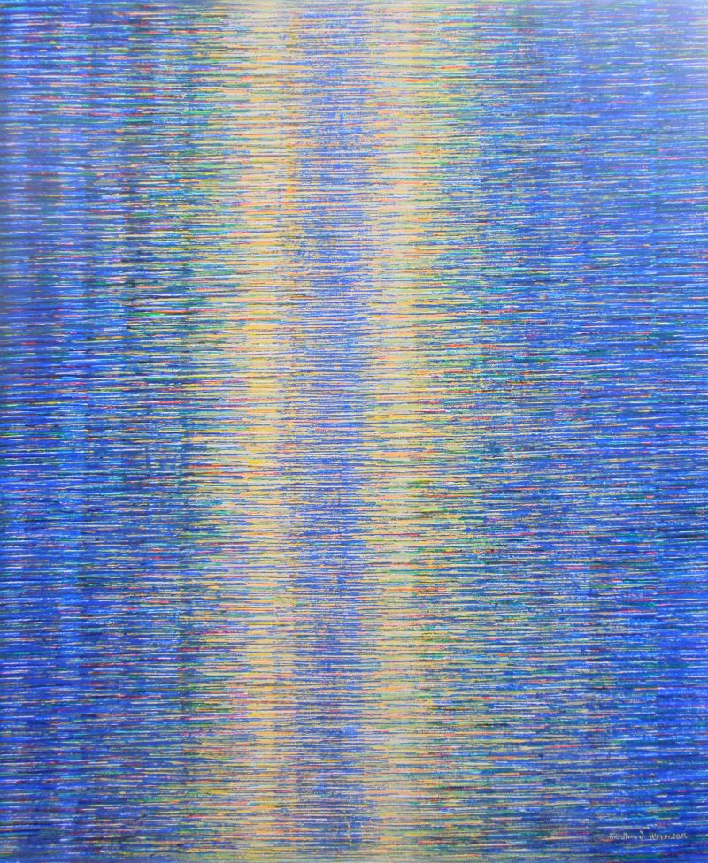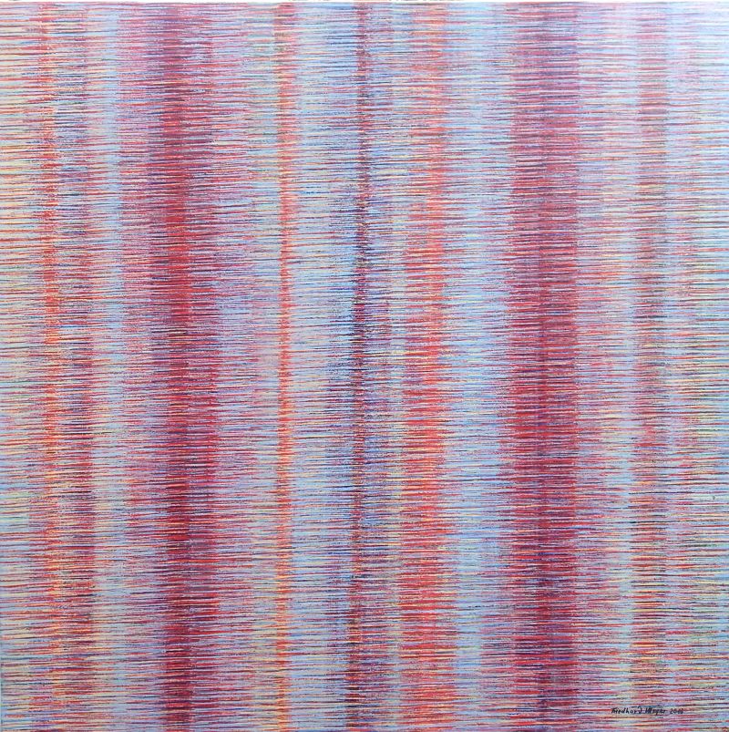 Ich arbeite bei diesen Bildern in meiner selbstentwickelten Acryl-Nadeltechnik, wobei meine Bildflächen einzig durch vertikales Aufsetzen eines 8 cm breiten Flachpinsels erzeugt werden. Das Aufbringen dieser „Nadeln“ erfordert äußerste Konzentration und Präzision.