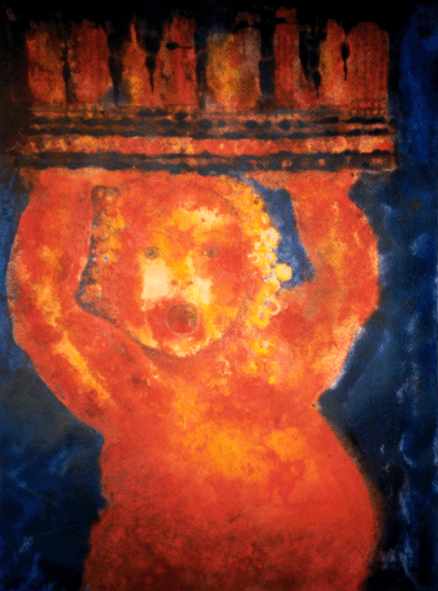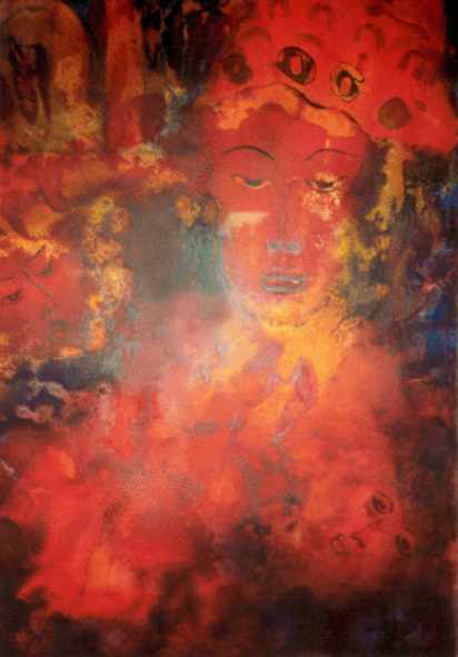 Diese ungeheuer reichen Entdeckungen drängten mich dazu, das Geschaute und Erlebte in meine Bildwelt umzusetzen. Wie im Rausch malte ich innerhalb von kurzer Zeit den 21 Blätter umfassenden Zyklus “MAHARASTRA”. Als Medium wählte ich dabei die intensiv leuchtenden Acrylfarben, die ich fast ungemischt, mit wuchtigem Auftrag, Naß in Naß auf grobem Papier verarbeitete. Hell erglühen die Figuren aus dem mystischen Dunkel und künden von ihrer immerwährenden Lebendigkeit.