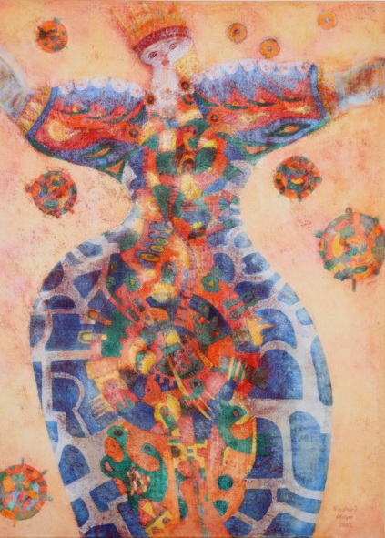 Die Bilder werden in Acryltechnik auf reliefartig vorstrukturierter Leinwand gemalt, wobei der Weg in jüngster Zeit ( ab 2008 ) von starker, bunter Vormalung über den schrittweisen Einsatz der Farbe „Weiß“ zu reduzierter Farbgebung führt. Die gezielte, dosierte Anwendung von „Weiß“ verleiht den Bildern eine gewisse Art von Noblesse .