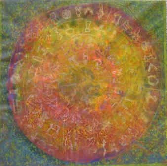 Die Bilder entstehen teils in Acryl-Collage-Technik, teils durch direktes Auftragen der Acrylfarben auf Leinwand. Dabei werden in beiden Fällen im 2. Arbeitsgang oft nochmals dünnflüssige Acrylfarben durch ein “Sieb” aus Nesselstoff auf das angetrocknete Bild hindurchgepaust, um eine gewisse Weichheit und Harmonisierung zu erreichen.
