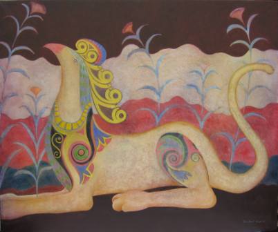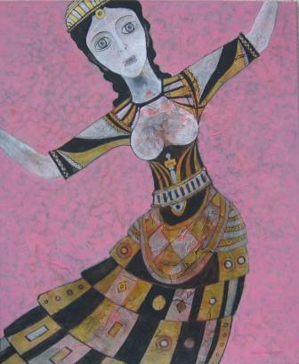 Ein Besuch der Ausgrabungsstätten auf Kreta und des Archäologischen Museums in Heraklion im Jahre 2004 ließ mich fasziniert in die Kultur der Minoer hinabtauchen. Meine Eindrücke von dieser Reise begann ich Anfang 2005 in dem Bilderzyklus “MINOS”, lebendig werden zu lassen.