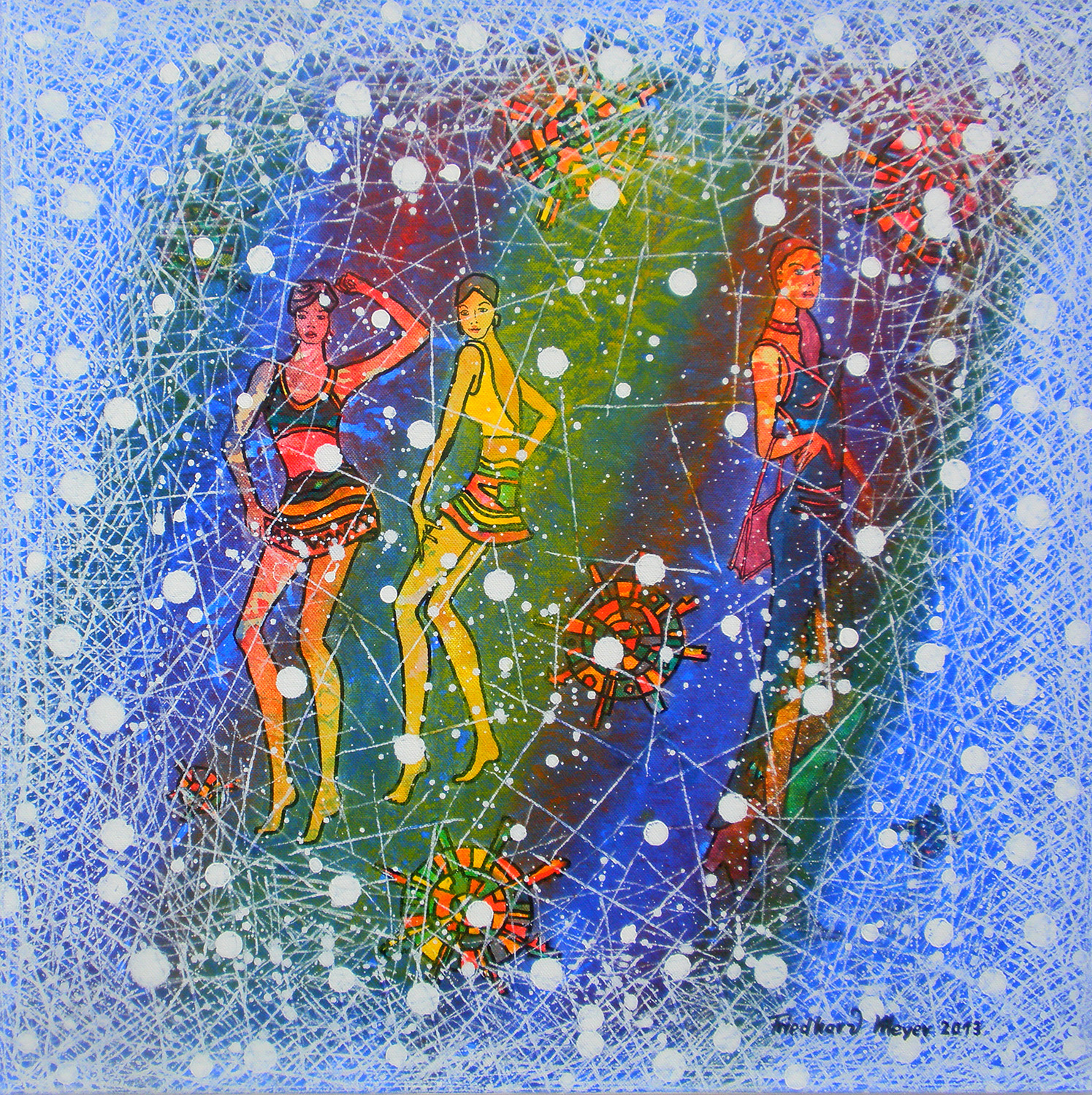 Ausgeführt sind die Bilder in der Technik „Die Farbe Weiß“ und in der daraus abgewandelten Facettentechnik.