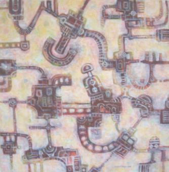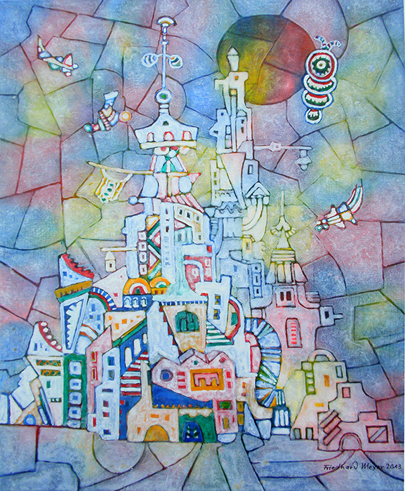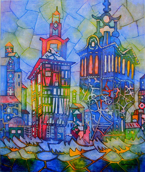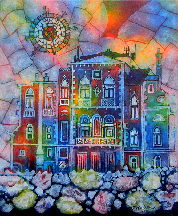 Die Bilder werden in Acryltechnik auf reliefartig vorstrukturierter Leinwand gemalt, wobei der Weg von starker, bunter Vormalung zu reduzierter Farbgebung führt, oft über den Einsatz der Farbe „Weiß“. Die gezielte, dosierte Anwendung von „Weiß“ verleiht den Bildern eine gewisse Art von Noblesse .