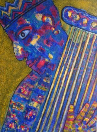 So habe auch ich mich dieses Themas angenommen und im Laufe des Jahres 2003 die Serie “Die Bibel” (20 Bilder) gemalt. Es sind großformatige, figürliche Darstellungen, die in erster Linie das Alte Testament zum Thema haben. Die Bilder wurden zunächst mit “trockenen” Acrylfarben und feinem Pinsel graphisch im Detail angelegt und anschließend großflächig, atmosphärisch mit breitem Pinsel und dünner Acrylfarbe überarbeitet.