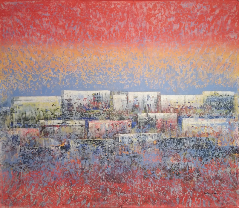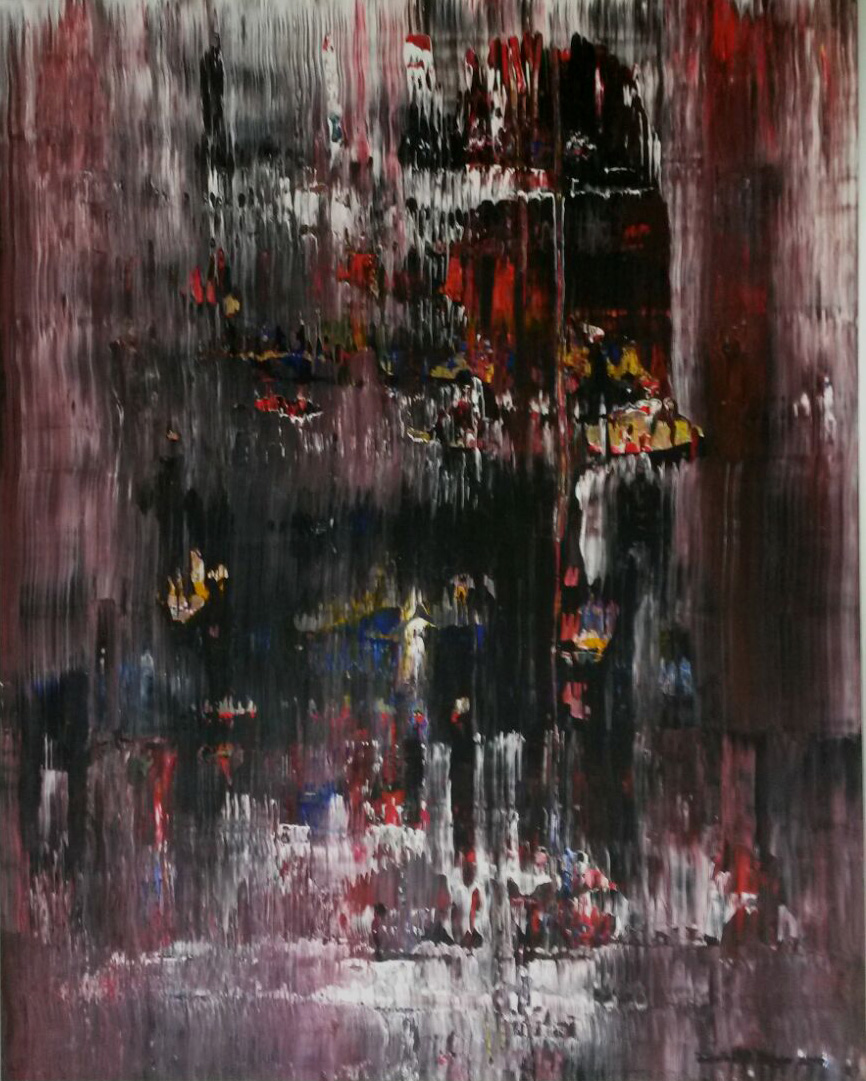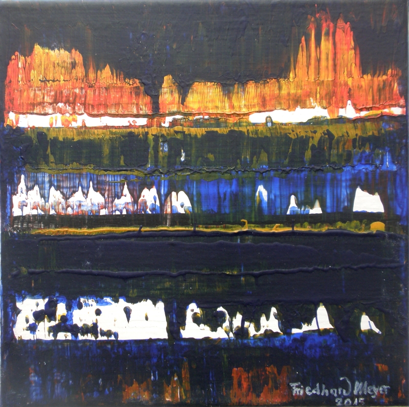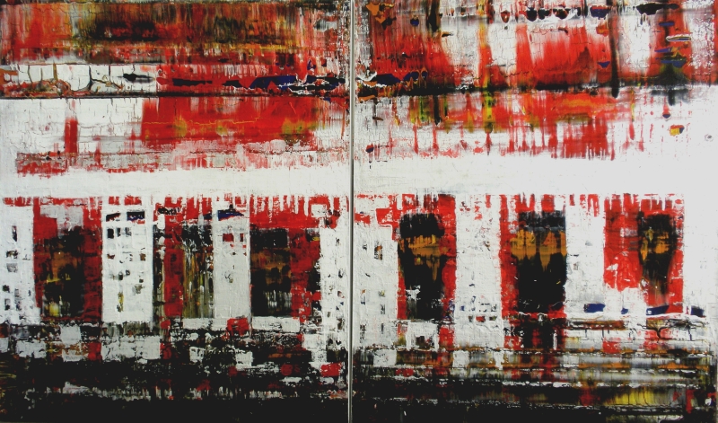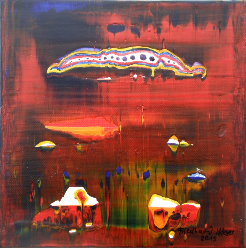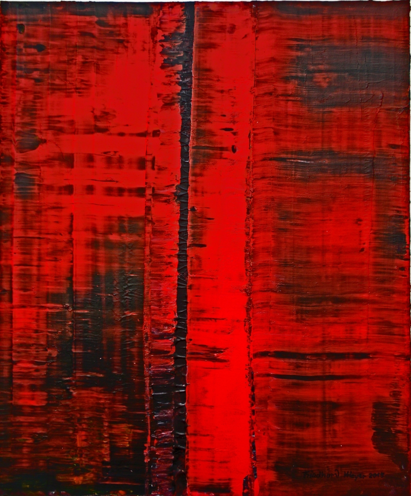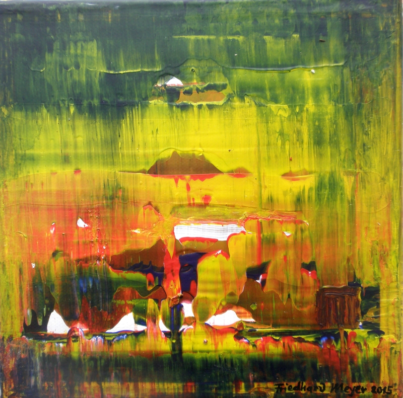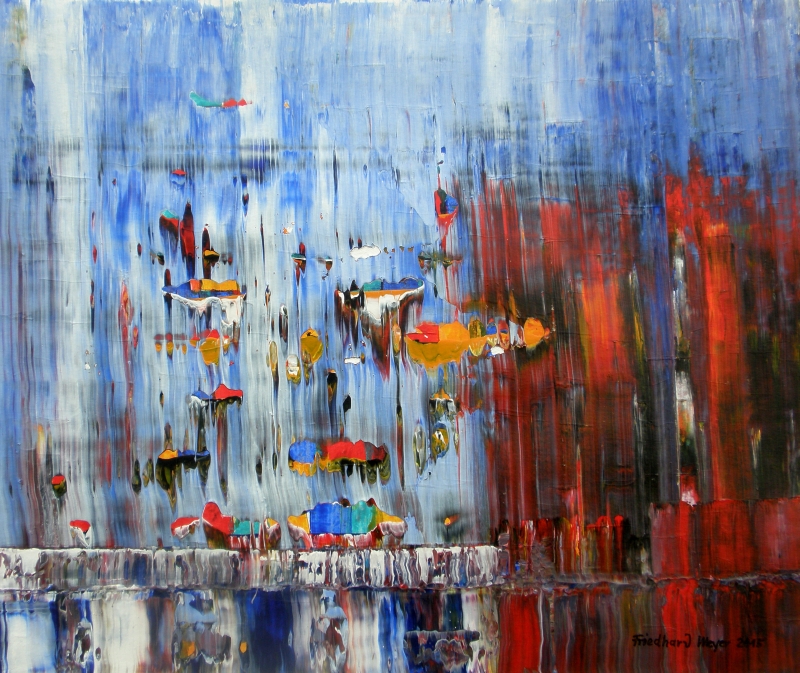 Seit 1993 beschäftige ich mich mit großformatigen Abstraktionen. Dabei werden dünnflüssige Acrylfarben durch Träufeln, Gießen oder Schütten auf den Bildträger aufgebracht. Die Bildgestaltung wird bei diesen Bildern nicht einseitig von der vorgegebenen und unverrückbaren Bildidee erzwungen. Vielmehr stehen Bildidee und Bildgestaltung in gegenseitiger Abhängigkeit. Während des Arbeitsprozesses entstehen z.B. neue Bildideen, die dann durch geeignete Farb- und Formwahl im weiteren Arbeitsverlauf realisiert werden. Die Entstehung des Bildes vollzieht sich sozusagen in einer stufenweise fortschreitenden Wechselwirkung zwischen Bildgestaltung und Bildidee. In jüngerer Zeit entstehen diese Bilder in der Technik „Die Farbe Weiß", ab 2013 vornehmlich in Acryl-Rakeltechnik.