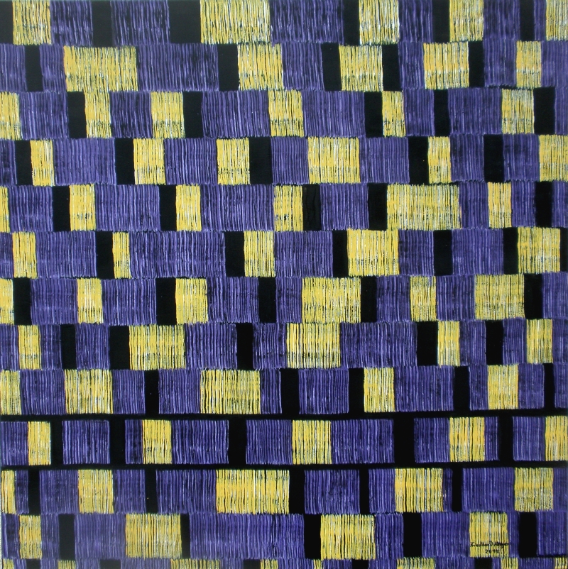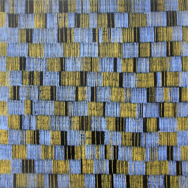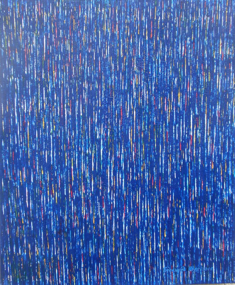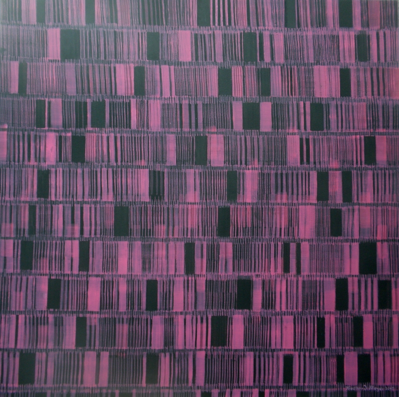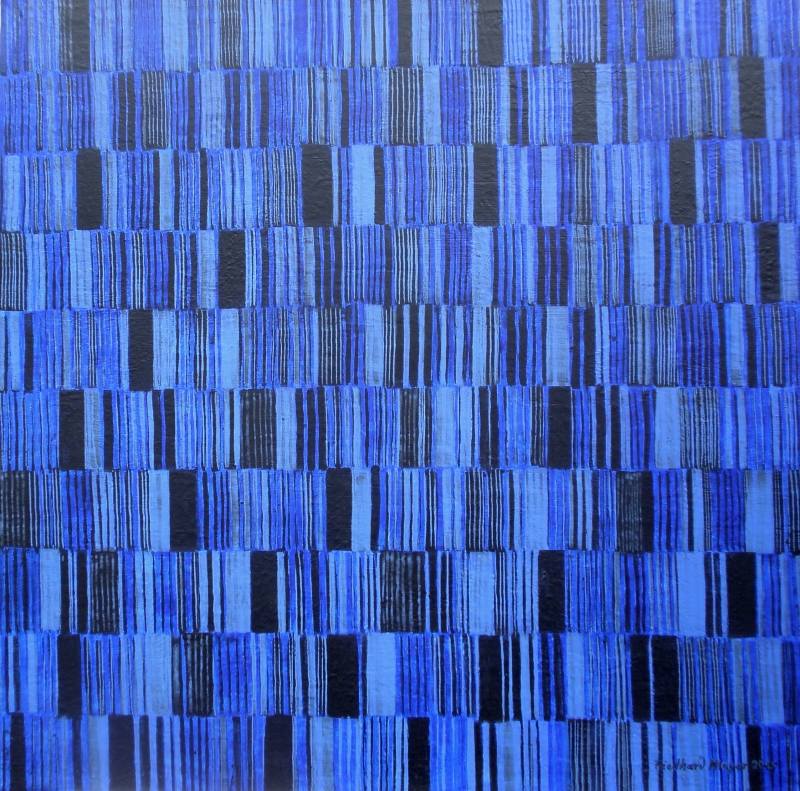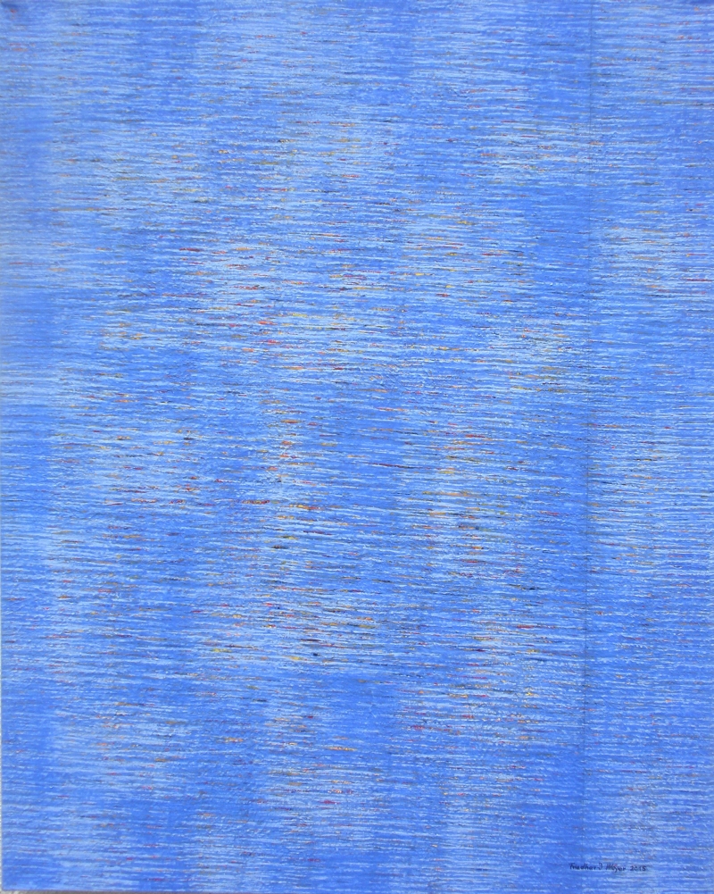 Ich arbeite bei diesen Bildern in meiner selbstentwickelten Acryl-Nadeltechnik, wobei meine Bildflächen einzig durch vertikales Aufsetzen eines 8 cm breiten Flachpinsels erzeugt werden. Das Aufbringen dieser „Nadeln“ erfordert äußerste Konzentration und Präzision.