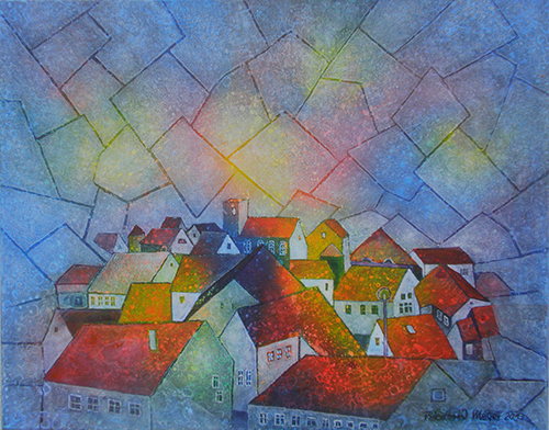 Die Bilder sind in Ölkreide/Acryl und Facettentechnik gemalt