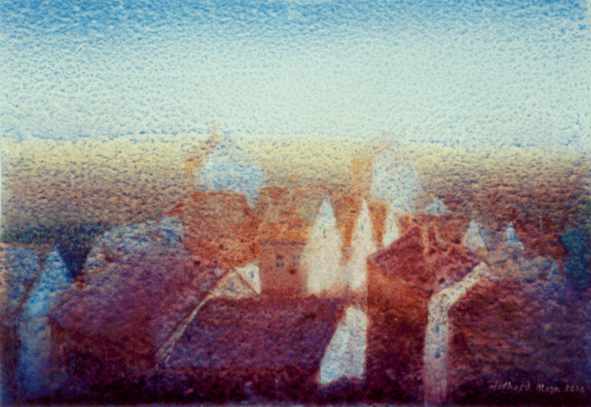 “Kuscheldörfer” sind kleine, vergessene Dörfchen, die sich in einer anonymen Landschaft verstecken, geborgen in einer verhüllenden Atmosphäre von unwirklichem Licht. Dort, fern ab von bösem Geschehen, scheint die Zeit still zu stehen, scheint die Welt noch in Ordnung.