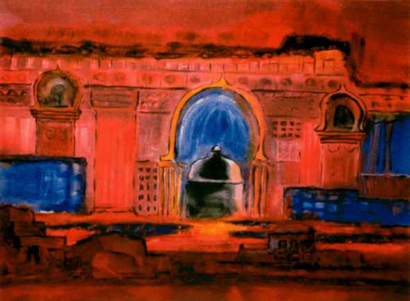In Mittelindien, im Staat Maharastra stieß ich auf die geheimnisvolle, unermeßlich reiche Götterwelt des Hinduismus, die sich mir in sehr gut erhaltenen Wandmalereien und Plastiken in den mehreren hundert Höhlentempeln von Elephanta, Ajanta und Ellora, unweit von Bombay offenbarte. In der Höhle von Elephanta (Insel im Golf von Bombay) überwältigt die 6 m hohe, einst mit Gold überzogene Großplastik “Trimurti”, die die hinduistische Götterdreiheit: Shiva als Brahma den Schöpfer, als Vishnu den Bewahrer und als Mahesh den Zerstörer darstellt, den Betrachter. Sie gilt als eine der schönsten Schöpfungen indischer Kunst. Die in natürlichen Grotten der Felsenschluchten von Ajanta und Ellora angelegten Höhlentempel, die erst wieder 1880 von James Fergusson aus dem Dickicht befreit wurden, bergen eine unendliche Vielfalt von hinduistischen Götterdarstellungen und liefern ein eindrucksvolles Zeugnis hinduistischer Kultur.