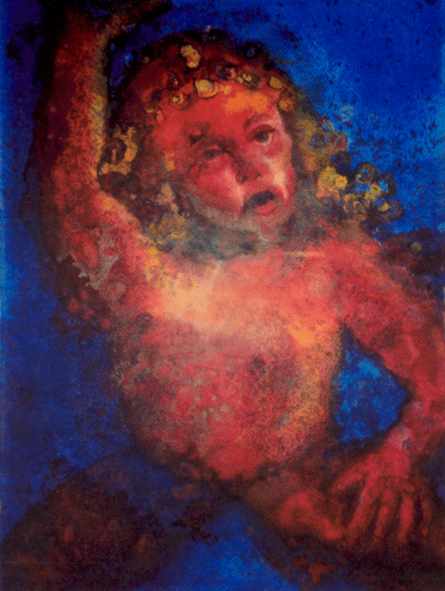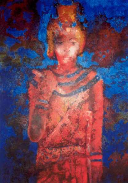 Diese ungeheuer reichen Entdeckungen drängten mich dazu, das Geschaute und Erlebte in meine Bildwelt umzusetzen. Wie im Rausch malte ich innerhalb von kurzer Zeit den 21 Blätter umfassenden Zyklus “MAHARASTRA”. Als Medium wählte ich dabei die intensiv leuchtenden Acrylfarben, die ich fast ungemischt, mit wuchtigem Auftrag, Naß in Naß auf grobem Papier verarbeitete. Hell erglühen die Figuren aus dem mystischen Dunkel und künden von ihrer immerwährenden Lebendigkeit.