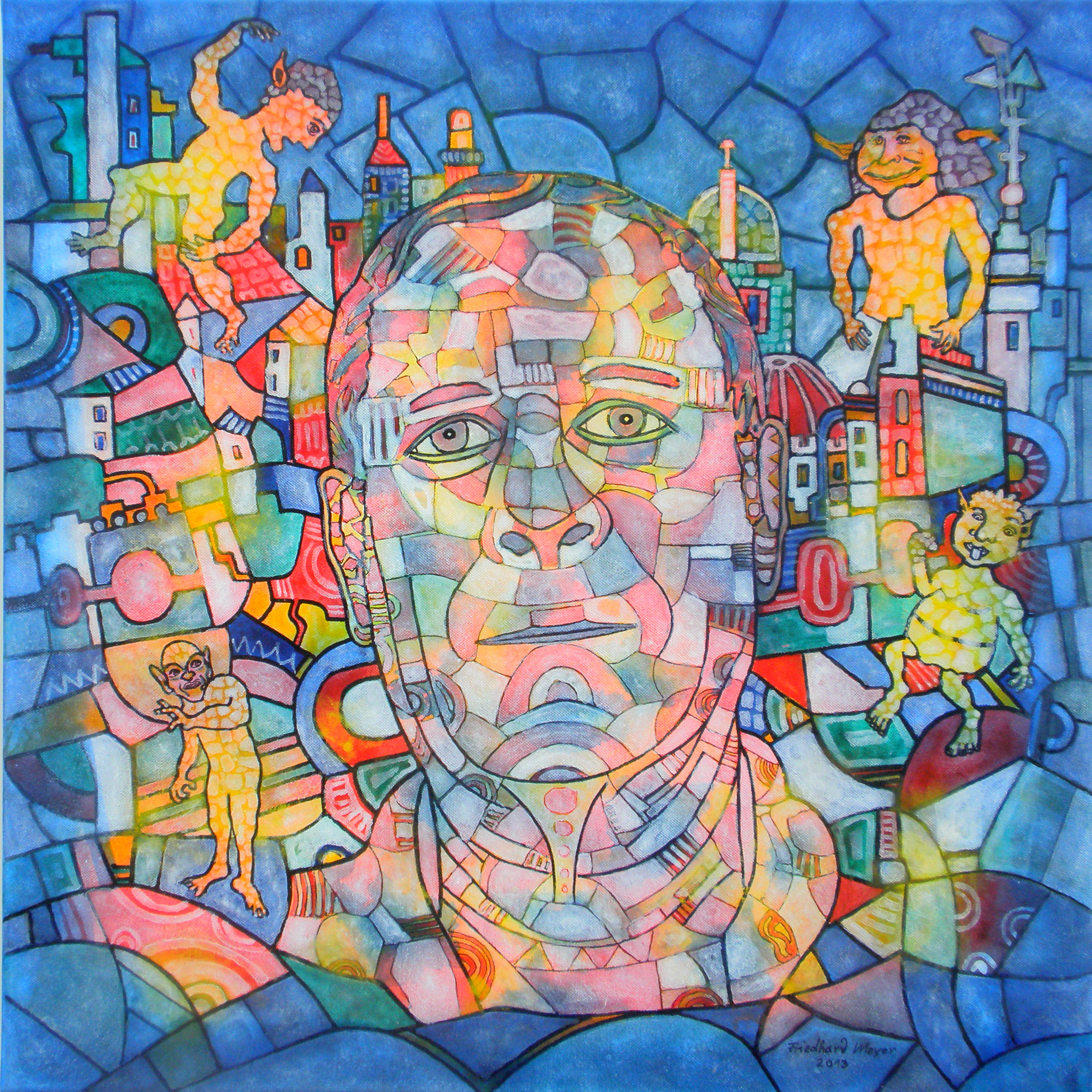 Selbstpotraits werden mit der Facettentechnik in skurriler Umgebung verfremdet.